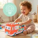W praktyce oznacza to jedno: dziecko nie tylko bawi się autobusem, ale naprawdę go “obsługuje”. To dużo bardziej wciągające niż zwykła zabawka do oglądania, bo tutaj mały użytkownik jest cały czas w ruchu i sam wywołuje efekt.