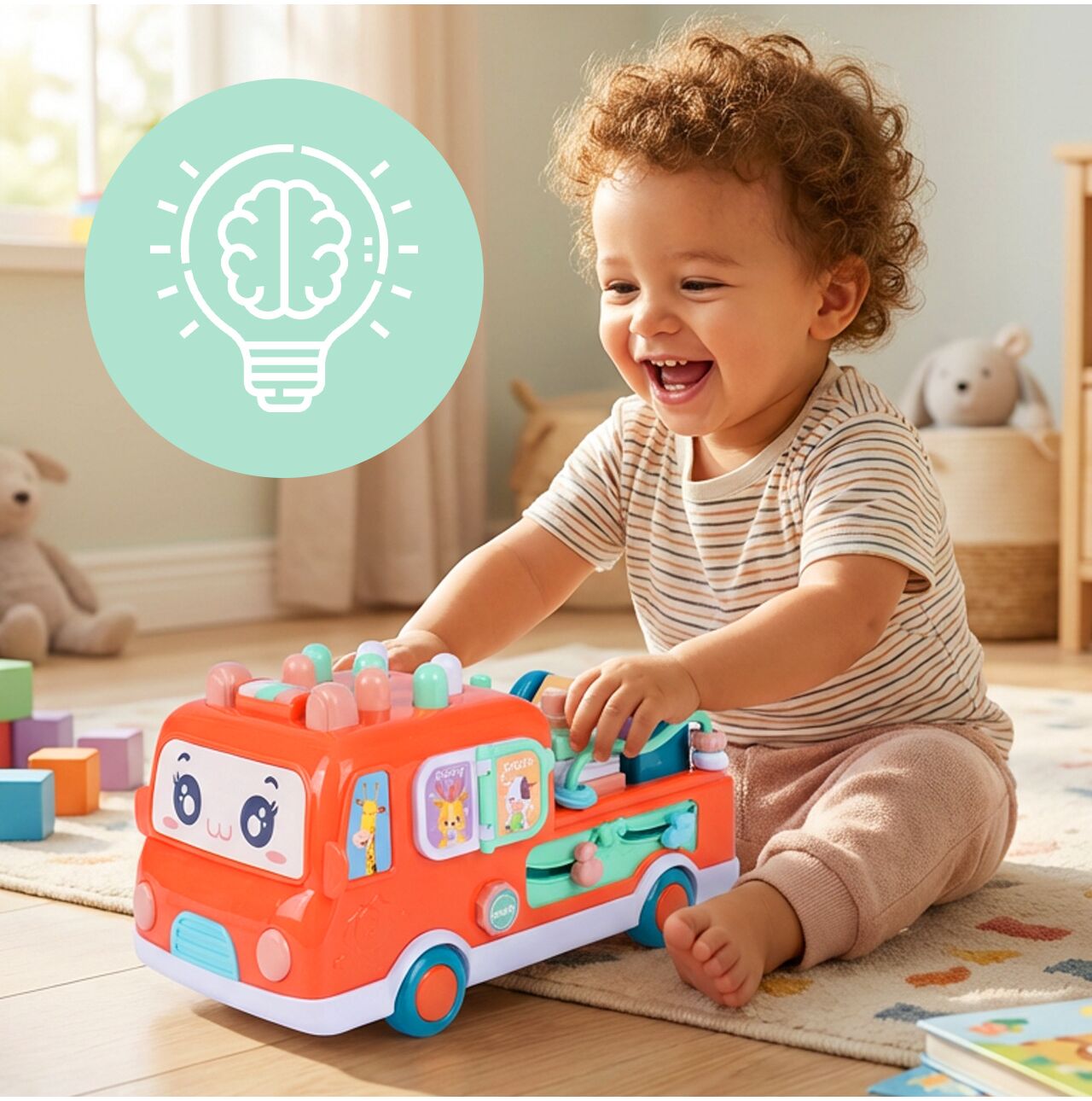 To zabawka, którą można wprowadzać etapami. Najpierw młoteczek i zbijak, później otwierane okienka, ruchome elementy, zabawy w dopasowywanie, nazywanie kolorów i zwierzątek. Dzięki temu autobus nie nudzi się od razu, tylko zostaje z dzieckiem na dłużej i daje coraz więcej możliwości wraz z rozwojem malucha.