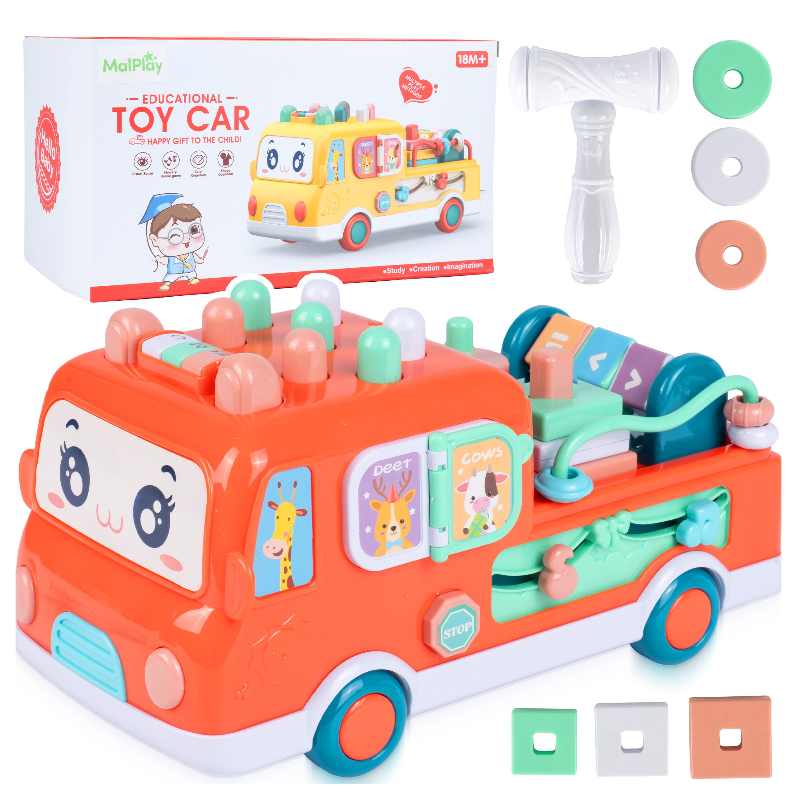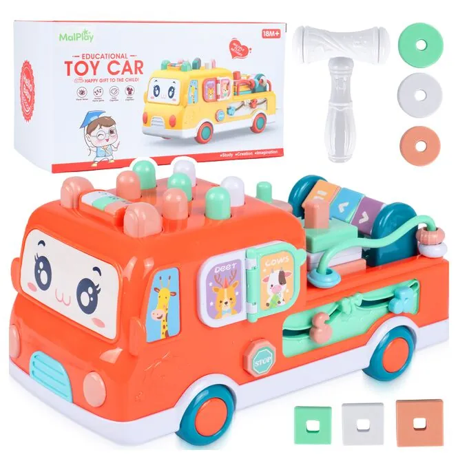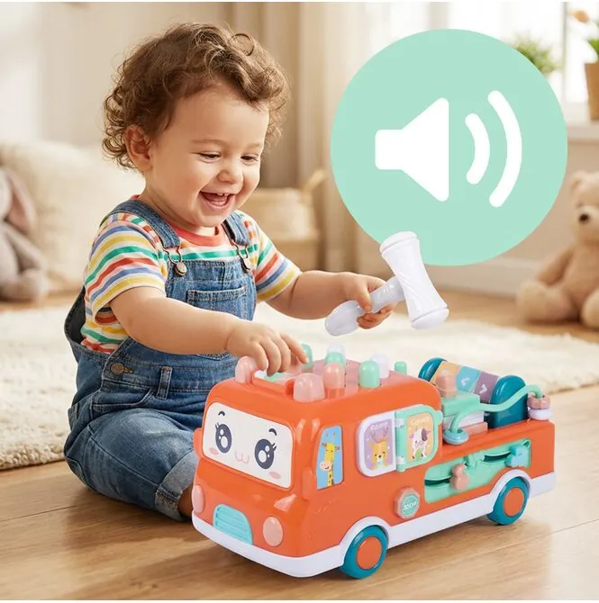 Autobus Edukacyjny Wbijak dla Malucha Młoteczek Sorter Bus Muzyczny 18m+