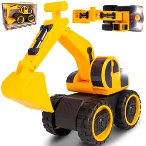 Ciężarówka jest wyposażona w przyciski na dachu, które uruchamiają efekty dźwiękowe i świetlne. Dzięki temu zabawa staje się bardziej realistyczna – dziecko poczuje się jak prawdziwy operator maszyny budowlanej!