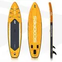 - Możliwość pływania w stylu SUP oraz kajakowym – deska posiada 4 pierścienie kajakowe umożliwiające montaż siedziska kajakowego, jednak zestaw nie zawiera siedziska.