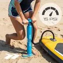 - Pompowana i kompaktowa – deska napełniana jest przy pomocy dwukierunkowej pompki z manometrem. Po zakończeniu rejsu wystarczy spuścić powietrze, złożyć ją i schować do plecaka.