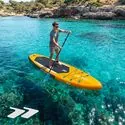Deska LAGO została wyposażona w 3 stateczniki, w tym 1 wyjmowaną płetwę środkową. Trójpłetwowa konstrukcja wspiera stabilne prowadzenie deski i pomaga utrzymać kierunek podczas pływania. To praktyczne rozwiązanie w rekreacyjnym użytkowaniu, zarówno w stylu SUP, jak i po zamontowaniu siedziska kajakowego we własnym zakresie.