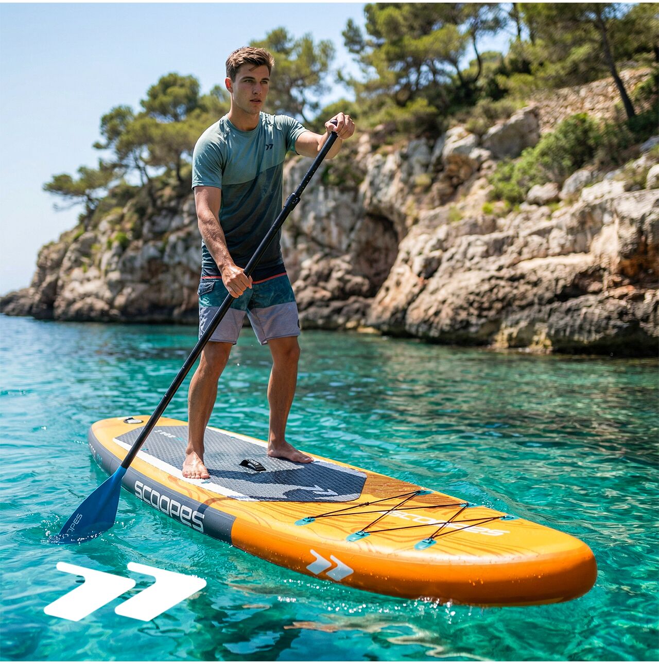 Podczas aktywności na wodzie bezpieczeństwo ma kluczowe znaczenie. Nasza deska SUP została zaprojektowana tak, by zapewniać wysoką stabilność, dzięki idealnemu stosunkowi długości do szerokości. Antypoślizgowa pianka EVA zwiększa przyczepność, nawet gdy pokład jest mokry.