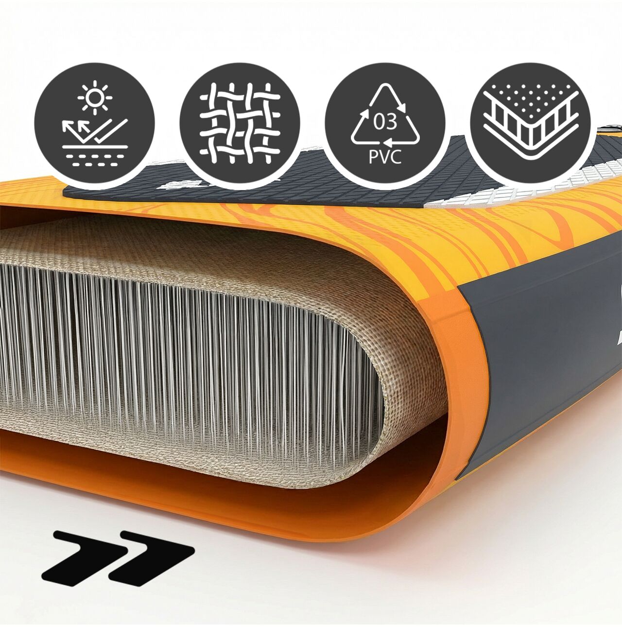 - Bezpieczna i komfortowa – antypoślizgowy pokład EVA z poprzecznymi nacięciami zapobiega ślizganiu się, nawet przy mokrej powierzchni.
