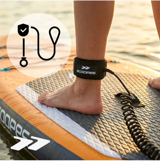 Dodatkowo deska posiada kontrastowe elementy, które poprawiają widoczność z większej odległości. A jeśli zdarzy Ci się wpaść do wody – nie musisz się martwić. Smycz na kostkę, przymocowana do tylnego D-ringu, sprawi, że deska zawsze pozostanie blisko Ciebie.