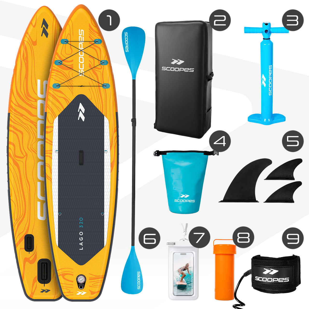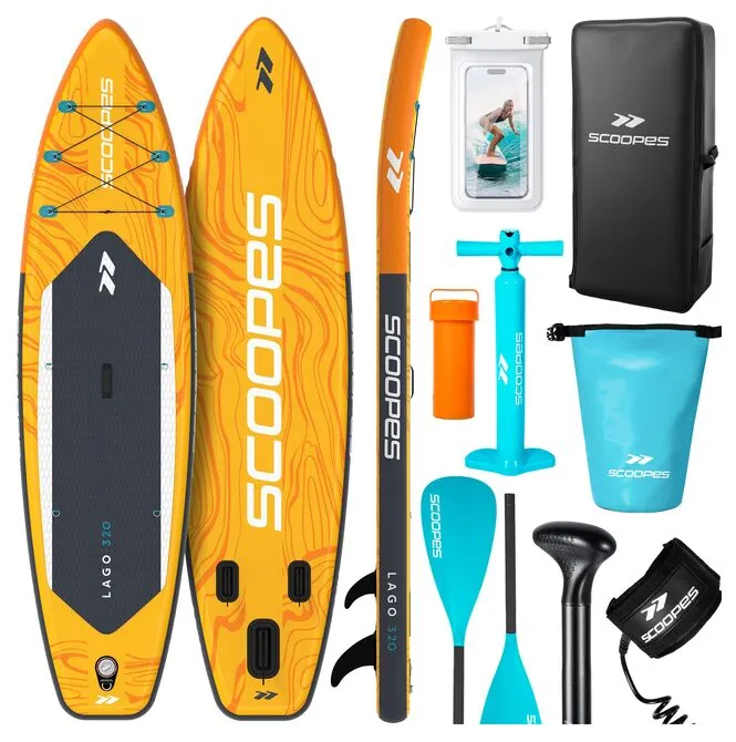 Wybierz deskę SUP LAGO 320 cm i zyskaj uniwersalny model rekreacyjny z praktycznym zestawem akcesoriów – idealny na spokojne jeziora, rzeki i wypoczynek nad wodą.