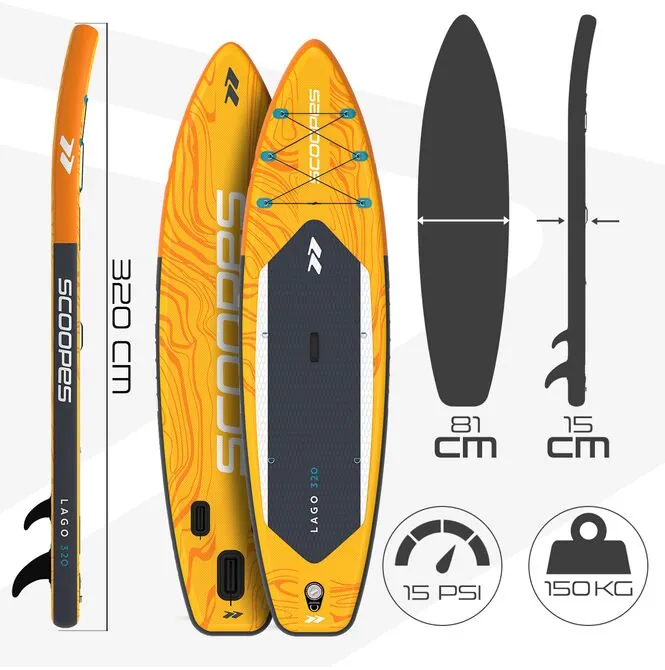 Deska SUP LAGO 350 cm to idealny wybór dla osób szukających większej stabilności i wyższej wyporności. Jej maksymalne obciążenie to aż 180 kg. Z kolei model LAGO 320 cm jest lżejszy, bardziej kompaktowy i łatwiejszy w manewrowaniu, co czyni go świetną opcją dla lżejszych użytkowników lub tych, którzy często podróżują.