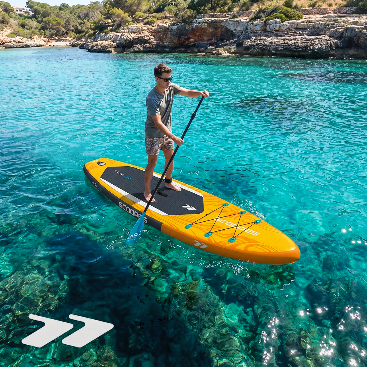 SUP LAGO to deska typu Allround, czyli wszechstronna i uniwersalna – idealna do rekreacyjnego pływania w różnych warunkach. Jej nowoczesny, przyciągający wzrok design sprawia, że wyróżnia się na tle innych modeli – nie tylko pod względem funkcjonalności, ale i estetyki. Dzięki kompaktowej długości 320 cm, deska zapewnia bardzo dobrą stabilność , a jednocześnie łatwe manewrowanie, co szczególnie docenią osoby początkujące lub lżejsi użytkownicy. Trójpłetwowa konstrukcja wspiera równowagę i zwrotność deski – zarówno na jeziorze, jak i spokojnej rzece.