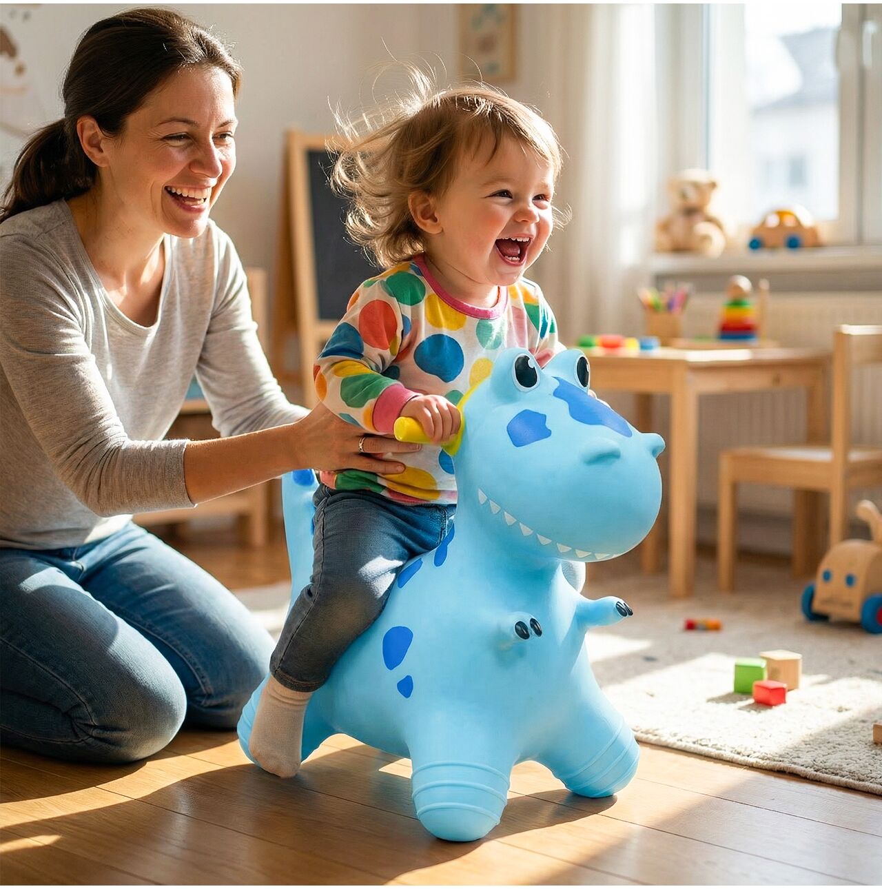 Są dni, kiedy dziecko ma mnóstwo energii, a pogoda albo sytuacja nie pozwala na długą zabawę na zewnątrz. Właśnie wtedy taki dinozaur robi świetną robotę. Skakanie, odbijanie i balansowanie pomagają rozładować energię w naturalny sposób, a jednocześnie dają dziecku ogromną frajdę. To jeden z tych produktów, które naprawdę mają sens w codziennym używaniu, bo nie tylko bawią, ale też pomagają dziecku aktywnie spędzać czas.