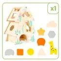 • Elementy: drewniane klocki geometryczne i figurki zwierząt do sortowania
