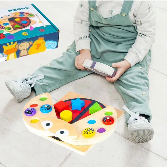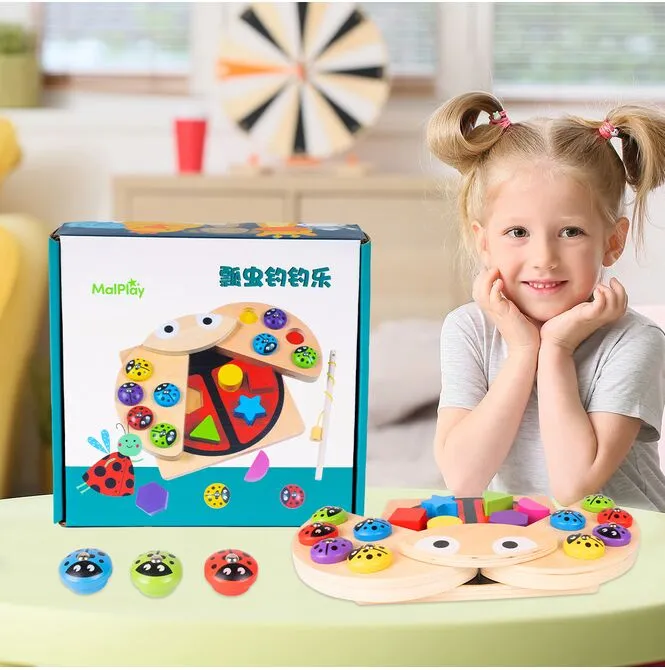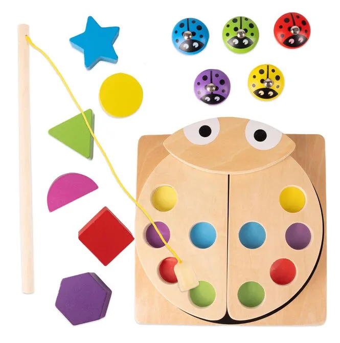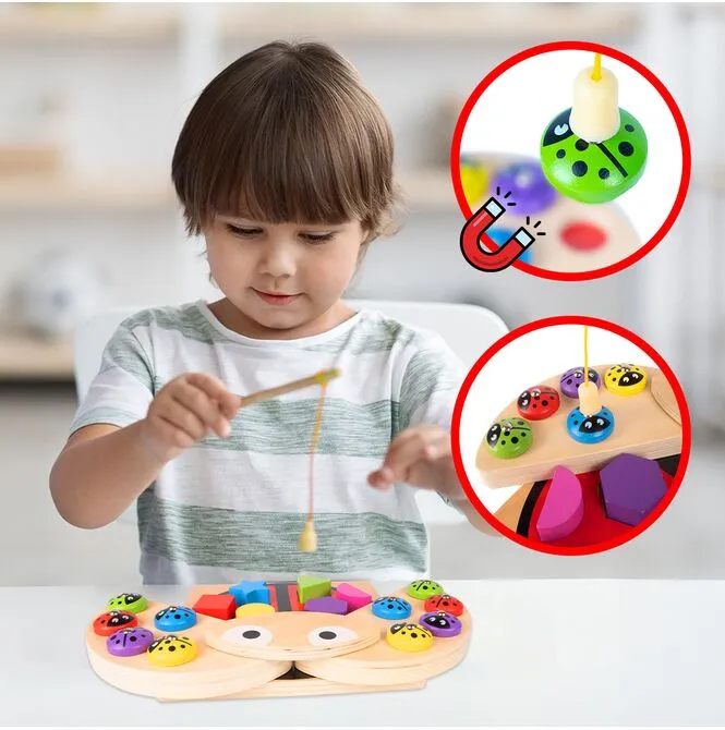 Drewniana Układanka Gra Łowienie Biedronek na Magnes Wędka Sorter 3w1
