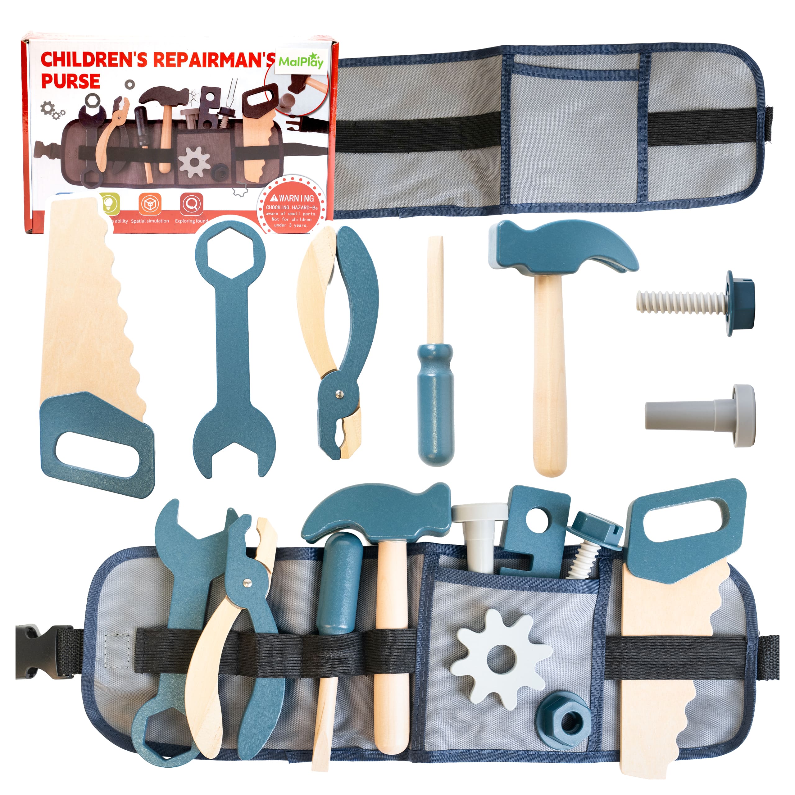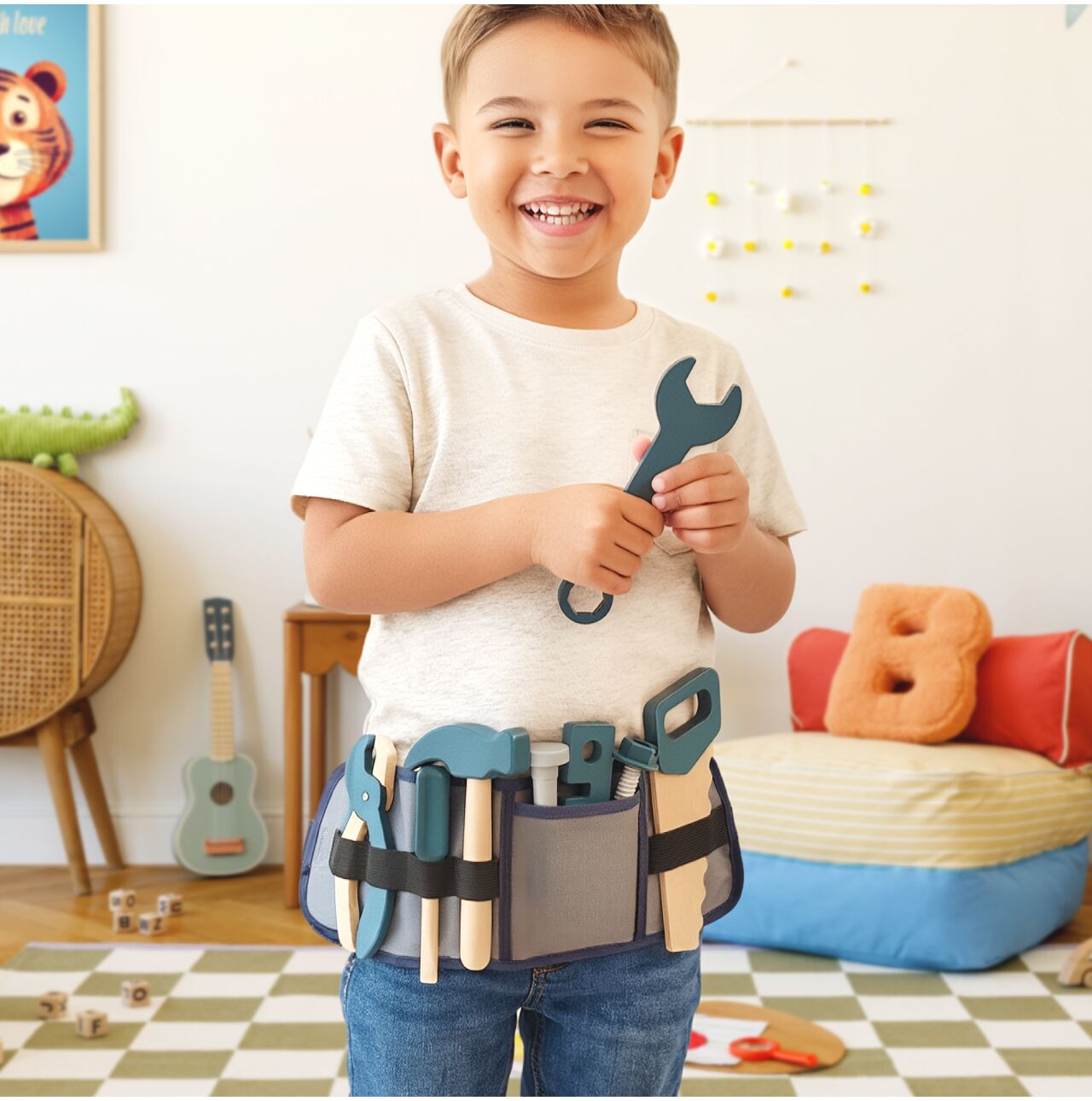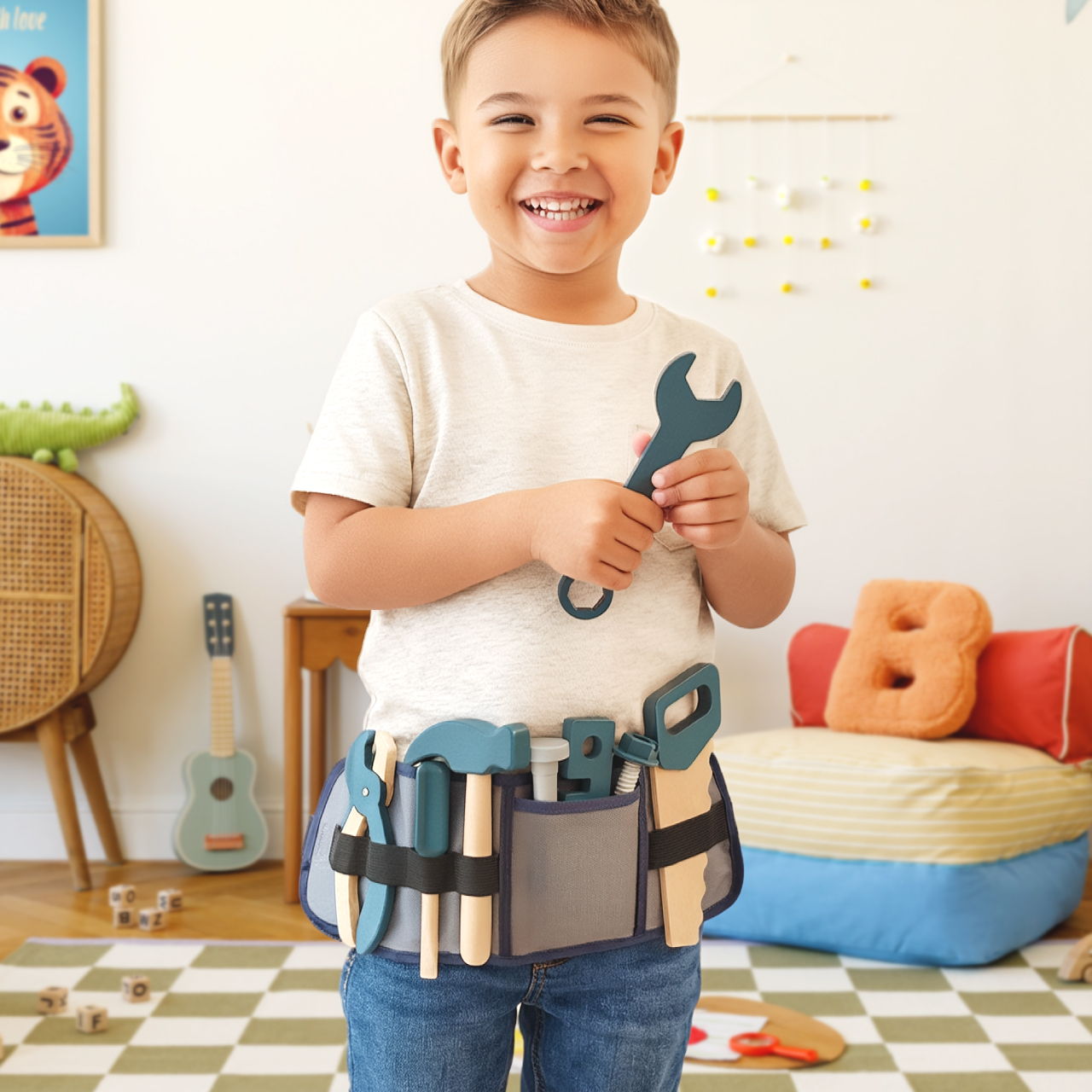 DREWNIANE NARZĘDZIA REGULOWANY PAS DLA DZIECKA ZESTAW MAŁEGO MAJSTERKOWICZA