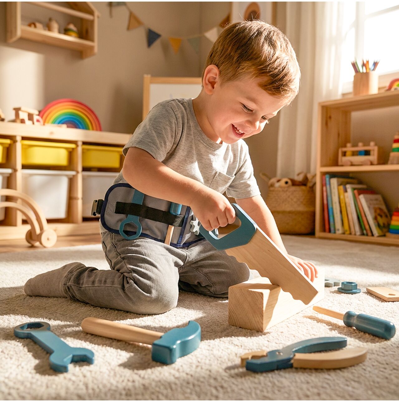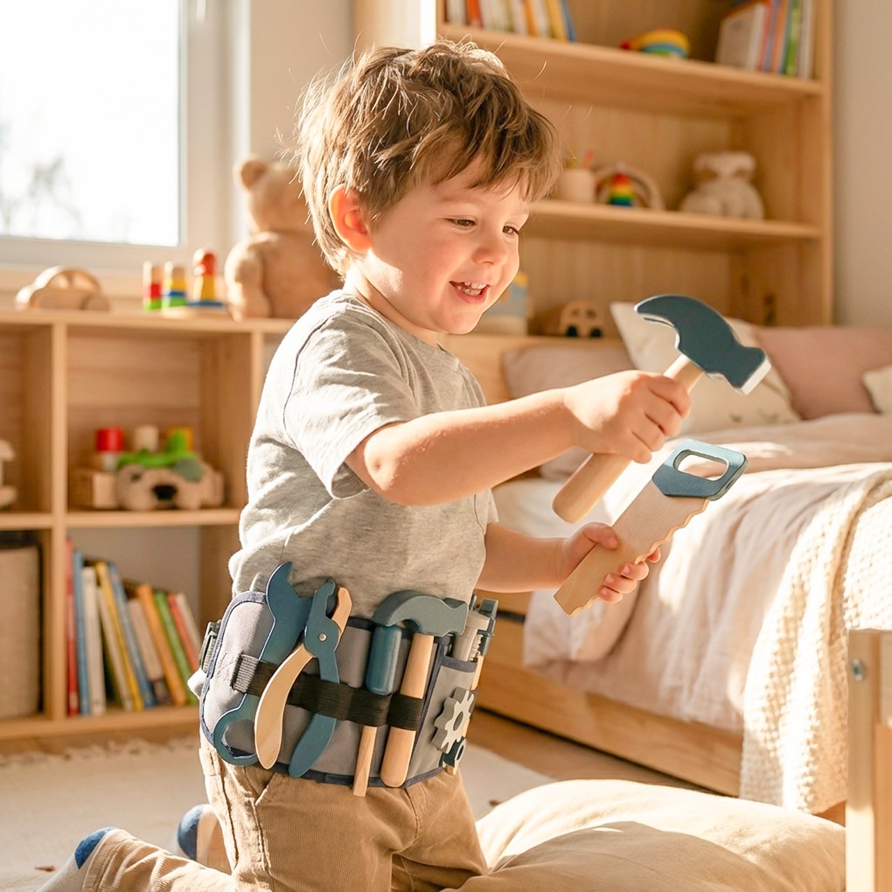 Dziecko może naprawiać krzesło, skręcać swoje zabawki albo budować własne konstrukcje z wyobraźni. To zabawa, która daje poczucie sprawczości i buduje pewność siebie.