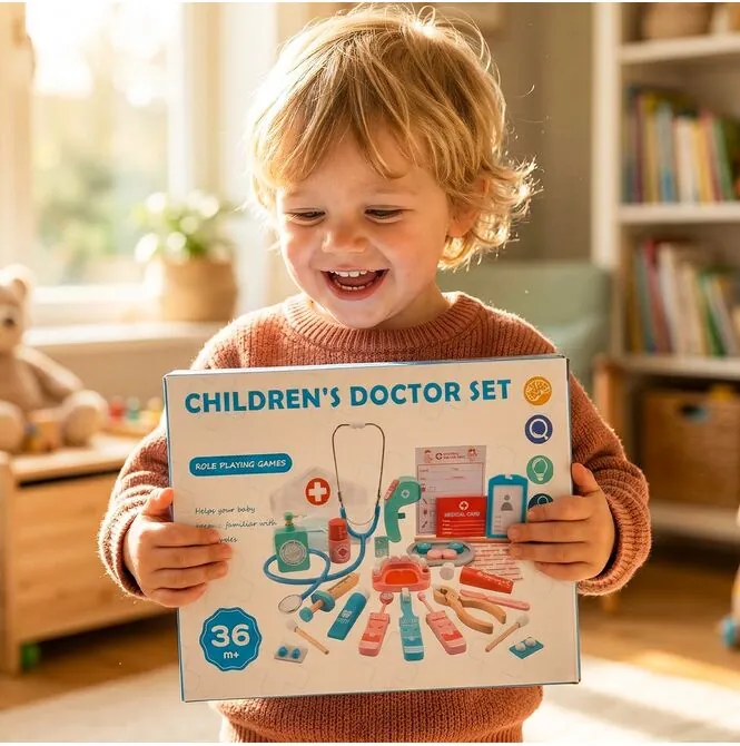 Do tego czapka lekarska, która sprawia, że dziecko naprawdę czuje się jak mały doktor. Taki detal robi ogromną różnicę – zabawa staje się bardziej wciągająca i naturalna.