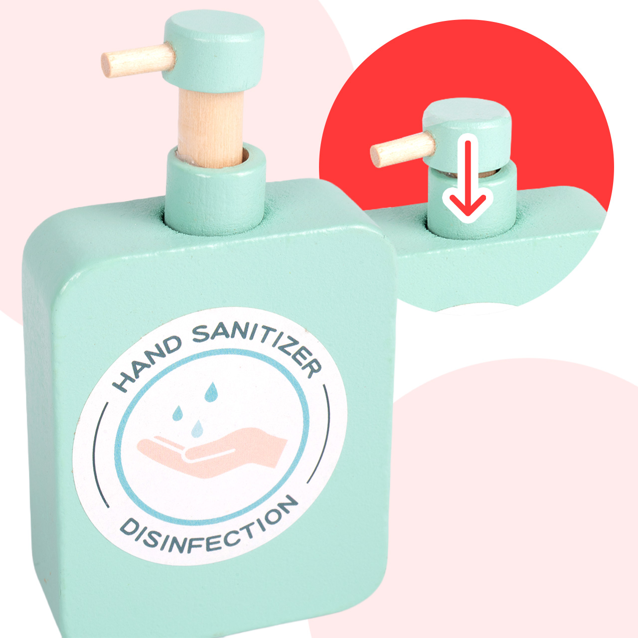 - Materiał: drewno + bezpieczne elementy plastikowe/tekstylne