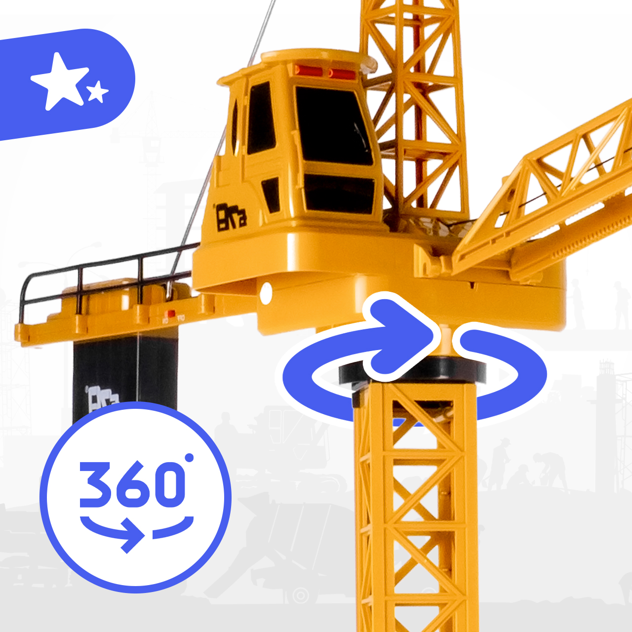 - obrót wieży 360° – precyzyjne manewry jak na prawdziwym placu budowy