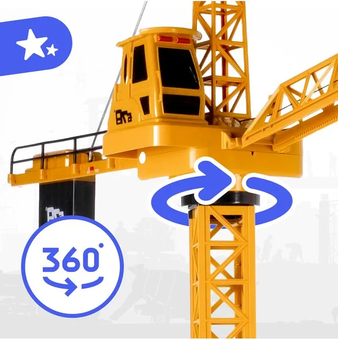 - obrót wieży 360° – precyzyjne manewry jak na prawdziwym placu budowy