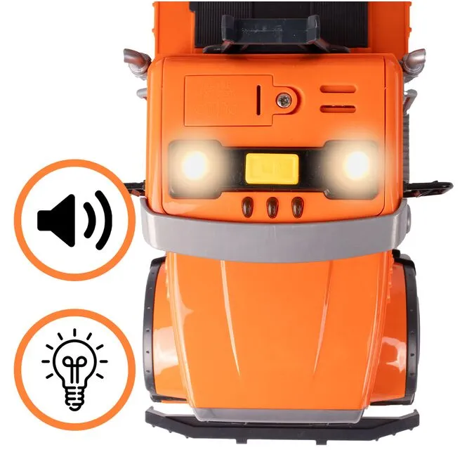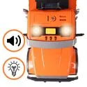 • Efekty świetlno-dźwiękowe – przycisk na dachu uruchamia światła i odgłosy pracy pojazdu dla pełni wrażeń.