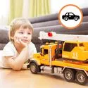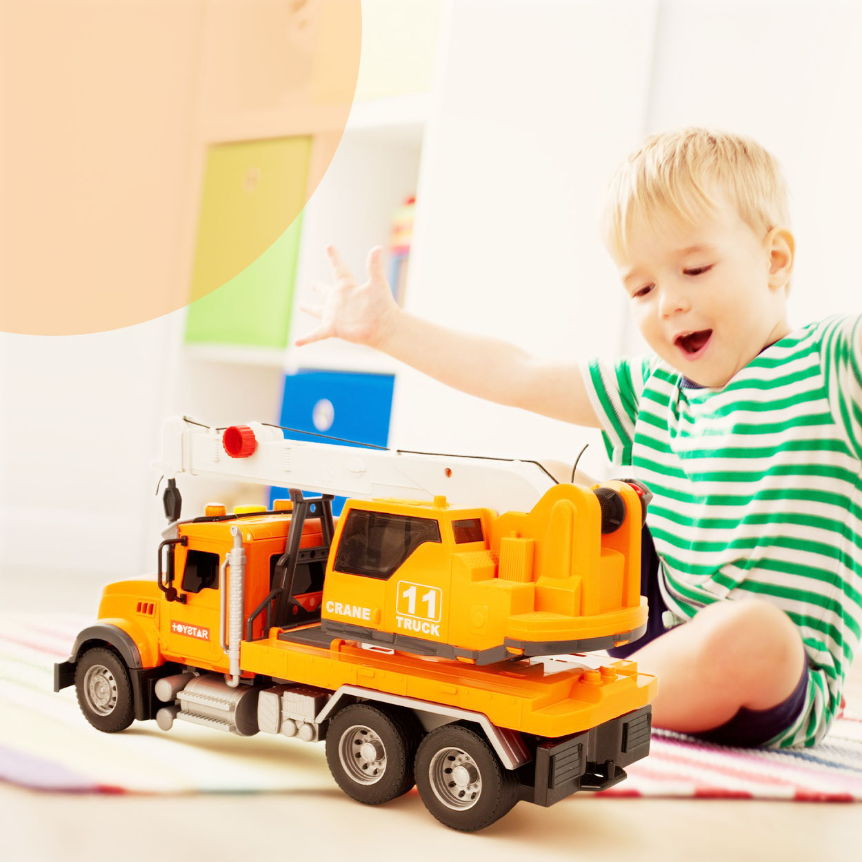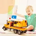 Dzięki mechanizmowi „pchnij i jedź” maluch nie potrzebuje pilota. Lekkie pchnięcie rozpędza ciężarówkę, a reszta to już czysta zabawa: dojazd na teren budowy, ustawienie pojazdu i start akcji.