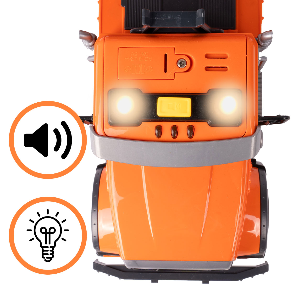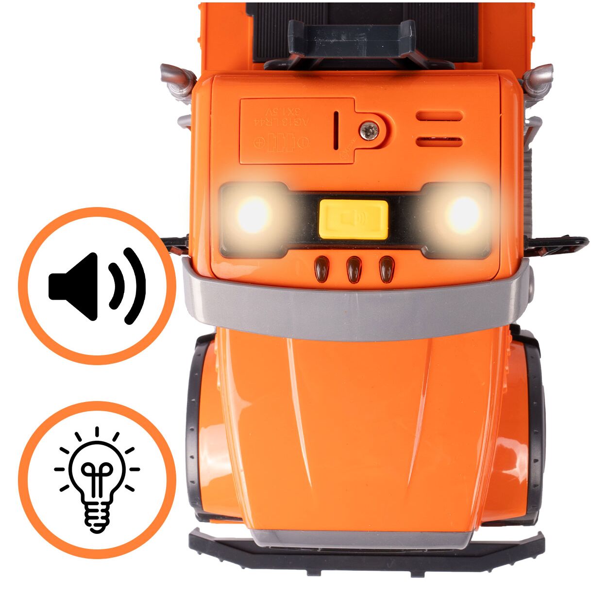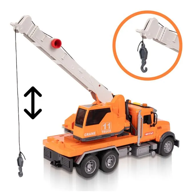 • Funkcje: napęd frykcyjny, teleskopowy wysięgnik, obrót żurawia, hak z liną i korbką, światła LED, dźwięki