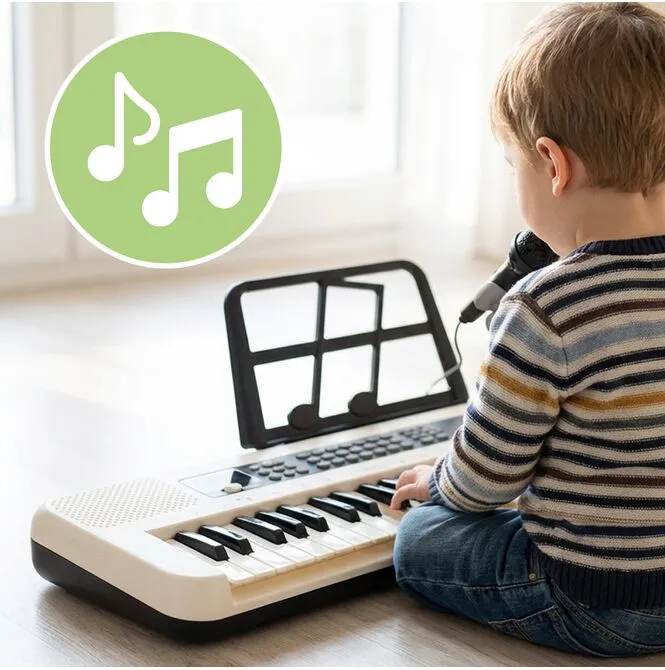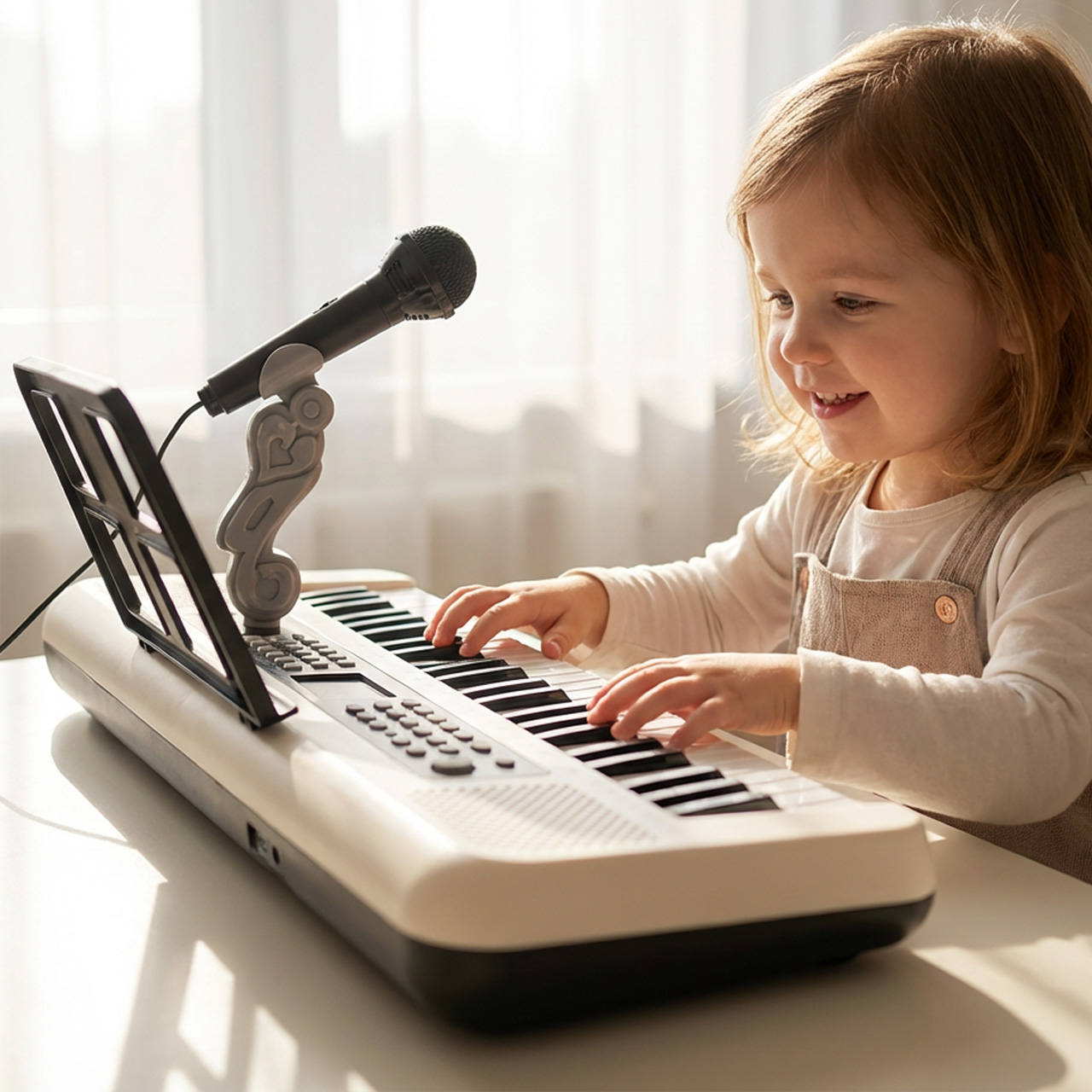 Dzięki funkcjom SYNC, FILL-IN, efektom pianinowym i perkusyjnym instrument brzmi nowocześnie i dynamicznie. Można tworzyć pełne aranżacje: rytm + melodia + akordy + śpiew. To już nie zabawka, to mini syntezator dla młodego artysty.