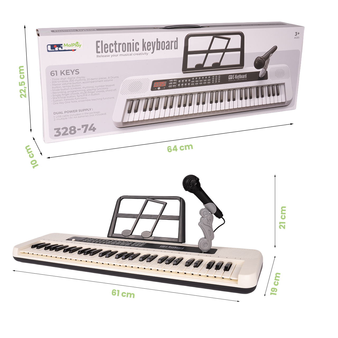 • 61 klawiszy – idealne do nauki gry i rozwijania talentu dziecka.