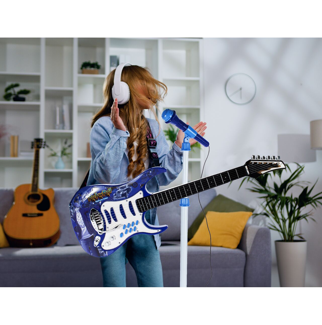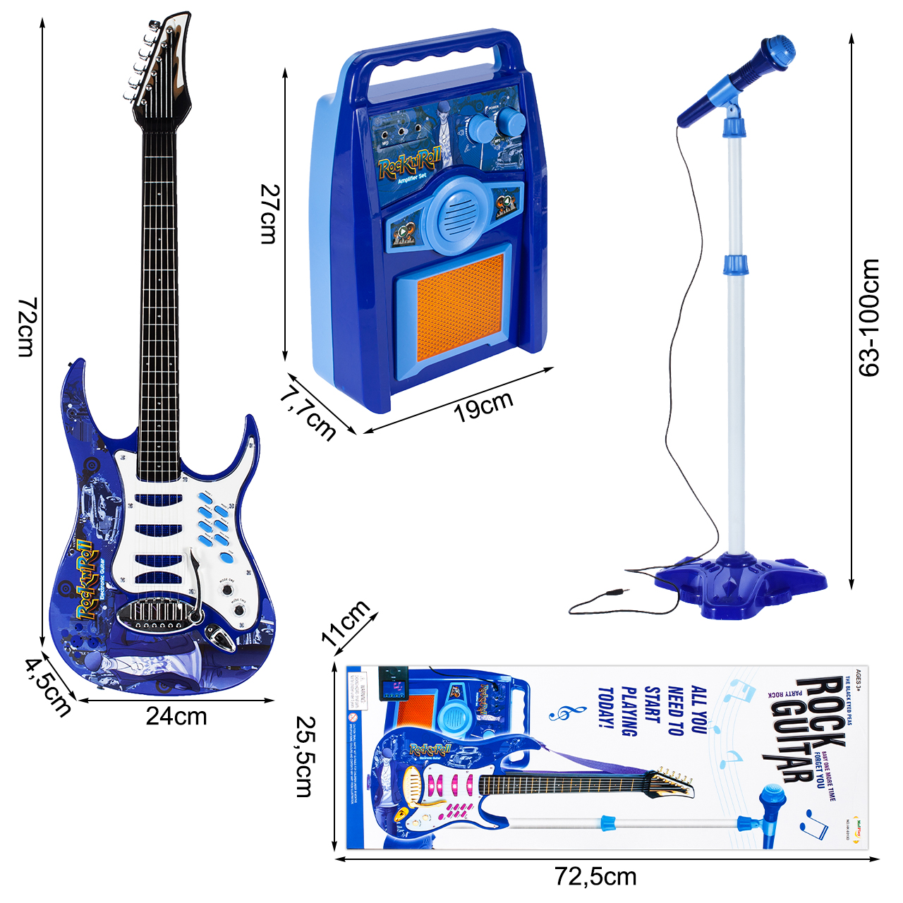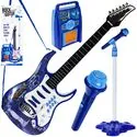 GITARA ELEKTRYCZNA DUŻA DLA DZIECI Z MIKROFONEM WZMACNIACZ STATYW NIEBIESKA