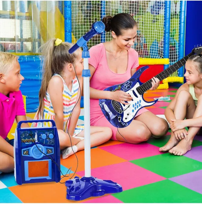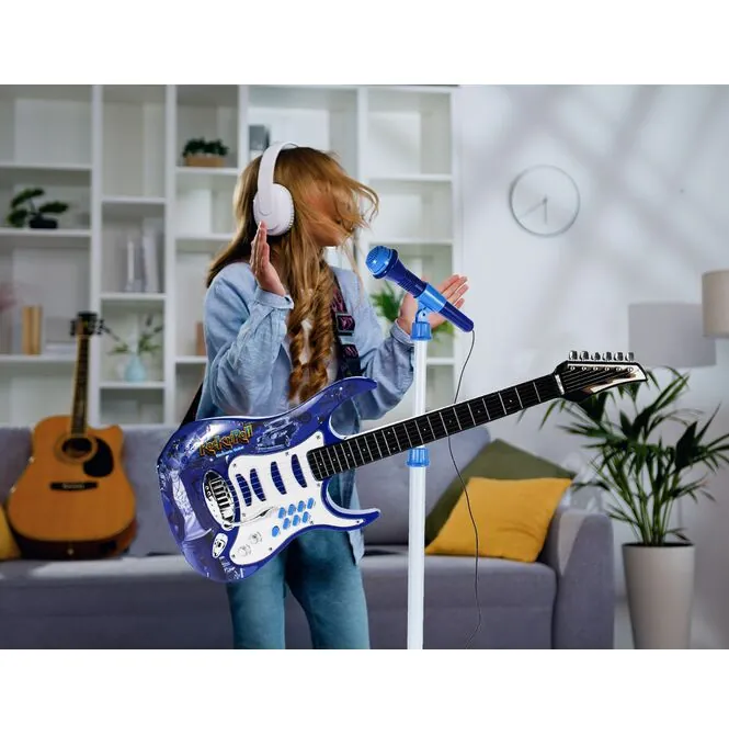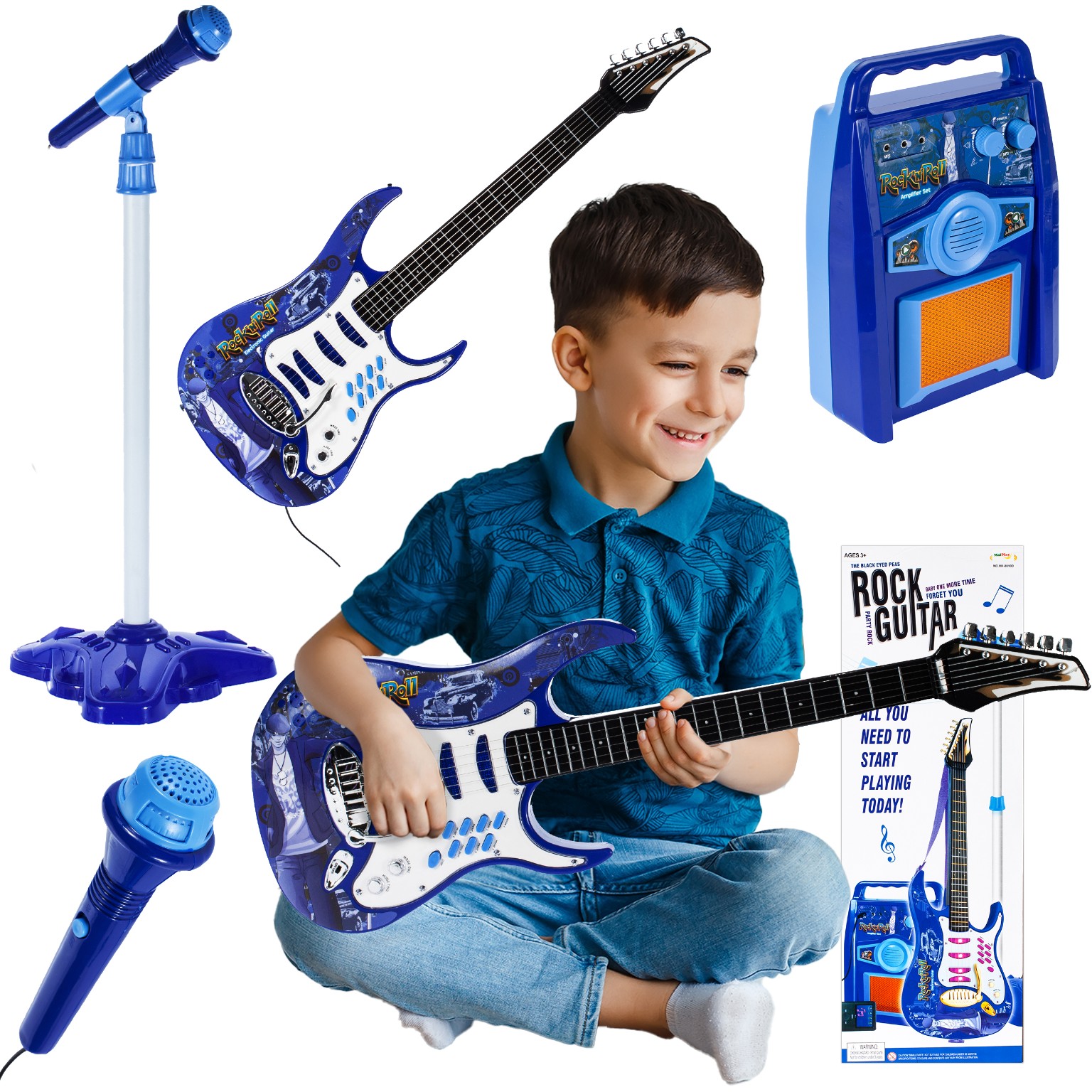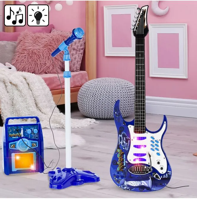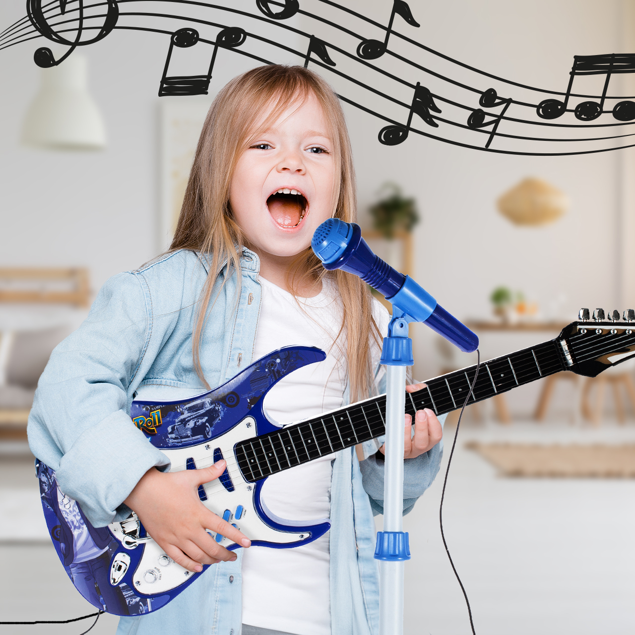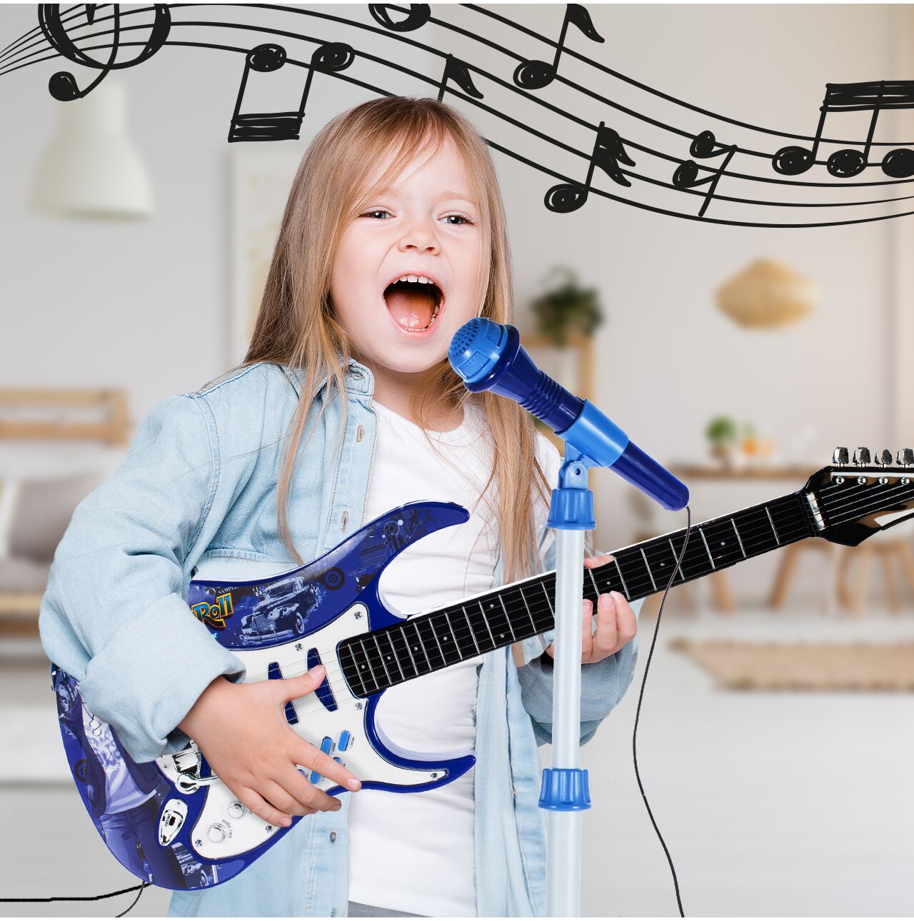 ✅Rewelacyjna gitara elektryczna dla dzieci w komplecie ze wzmacniaczem i statywem z mikrofonem z pewnością spodoba się każdemu małemu miłośnikowi muzyki i występów przed publicznością.