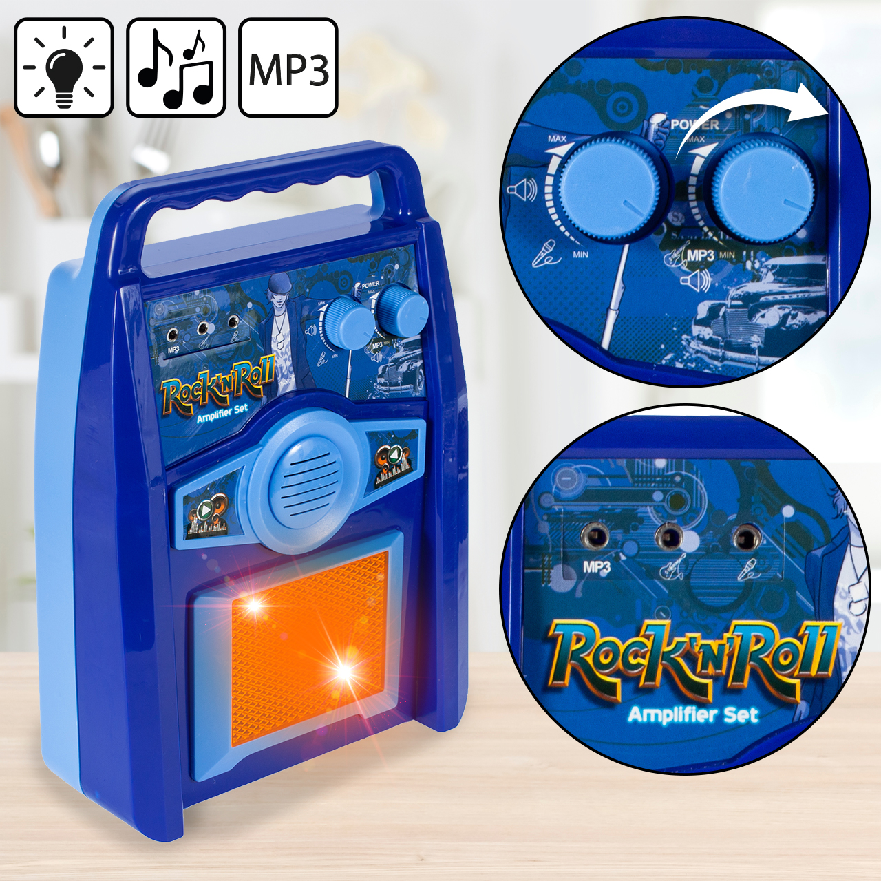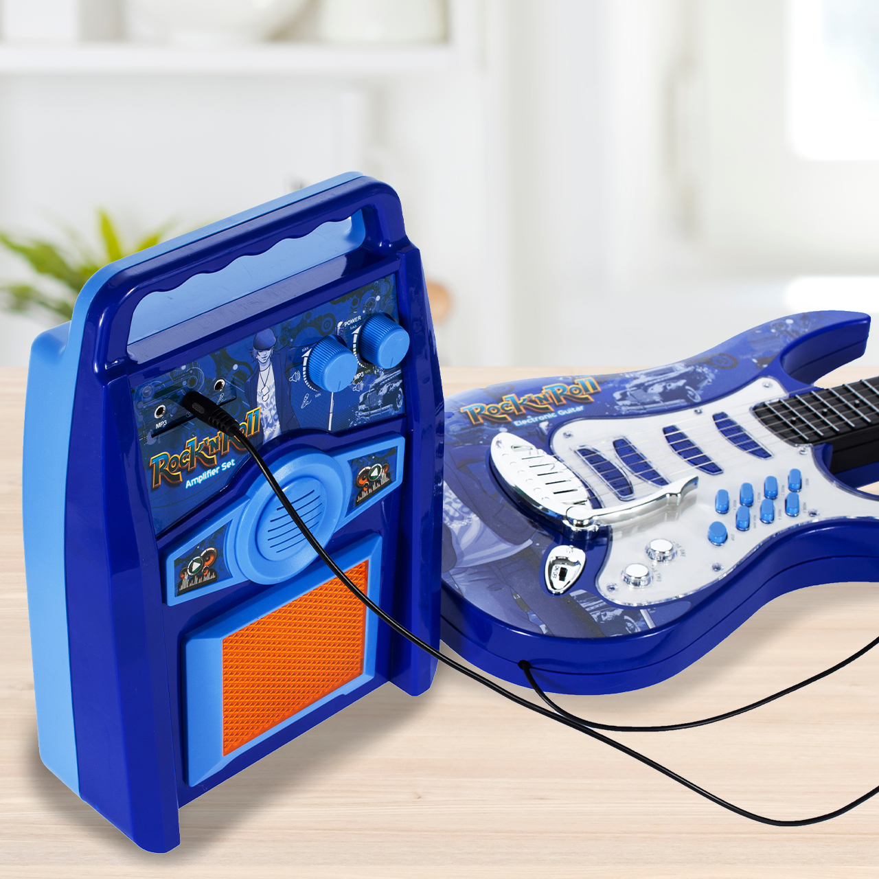 Gitara ze wzmacniaczem sprawi, że dziecko poczuje się niczym prawdziwy artysta na scenie. Jak gwiazda muzyki na koncercie, tak Twoje dziecko z gitarą z mikrofonem będzie tworzyć wspaniałe melodie i śpiewać do nich piosenki. Szalonemu koncertowi towarzyszą migające światełka w gitarze i wzmacniaczu.