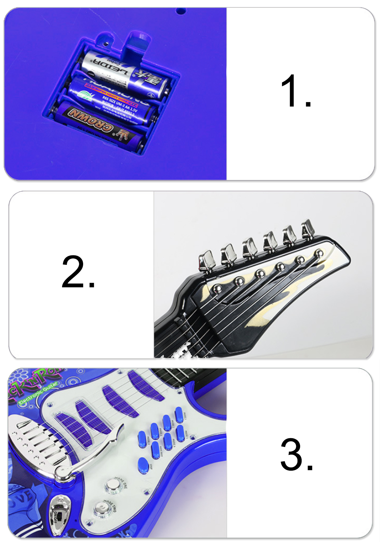 ✅Gitara ze wzmacniaczem zasilane są bateriami (brak w zestawie), dzięki czemu zestaw można zabrać do babci, przedszkola czy na urodzinki, nie martwiąc się o dostęp do źródła zasilania.