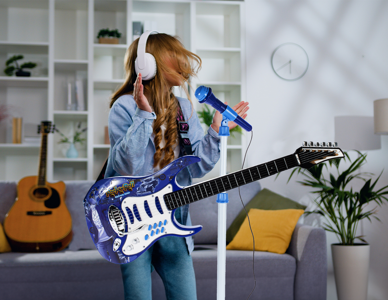Do zestawu gitary ze wzmacniaczem można również podłączyć własne mp3 z ulubionymi piosenkami wraz z wokalem – wówczas mały artysta będzie miał możliwość grania i śpiewania ze swoimi ukochanymi piosenkami w tle – to pomaga opanować tremę!