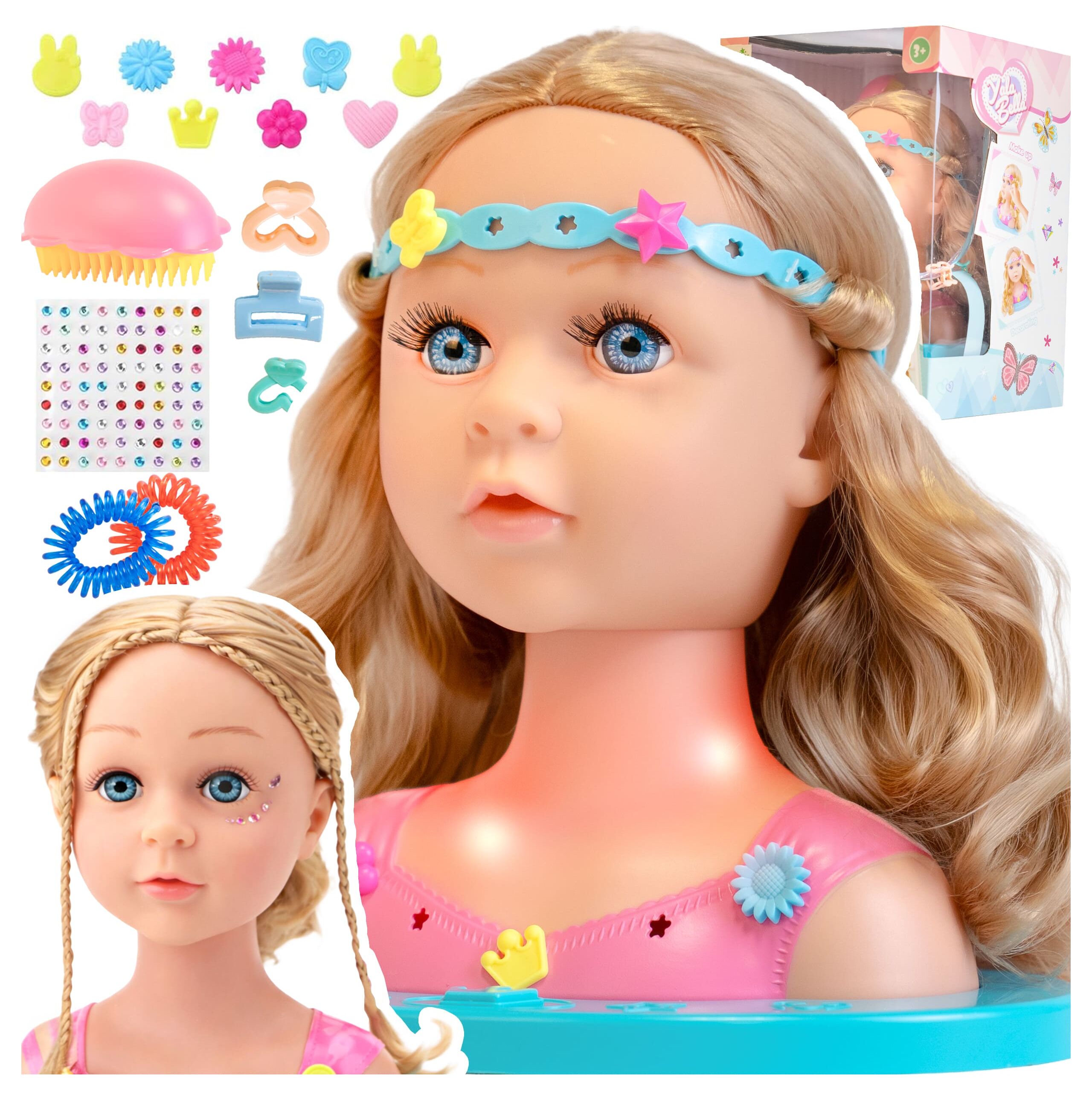 GŁOWA LALKI DO STYLIZACJI TWORZENIA FRYZUR DLA DZIEWCZYNKI 3+ ZESTAW XXL