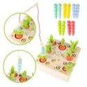 Wędka z magnesem pozwala na "łowienie" 9 kolorowych robaczków. Każdy robaczek ma metalową główkę, którą trzeba trafić końcówką wędki. To nie tylko świetna zabawa, ale i nauka precyzji oraz koncentracji.
