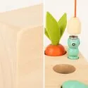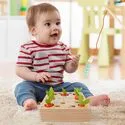 Solidna drewniana baza imituje ogródek warzywny z sympatycznym króliczkiem. Można w niej przechowywać wszystkie elementy, co pomaga w nauce porządku i organizacji. Idealna do zabrania w podróż!
