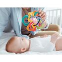 Bogata gama kolorystyczna aktywizuje zmysł wzroku oraz percepcje. Zabawkę bez trudu maluch może utrzymać w rączce, potrząsać, by wydawała dźwięki oraz obracać kulę, by poruszyć osadzone na niej pierścienie.Odgłos click- clok uatrakcyjnia tą formę aktywności. Dodatkowe elementy jak kółeczka czy okręgi - kwiatuszki otaczające obręcze, skłaniają dziecko do ich przesuwania wzdłuż nich, absorbują uwagę na długo ucząc precyzji i wytrwałości.