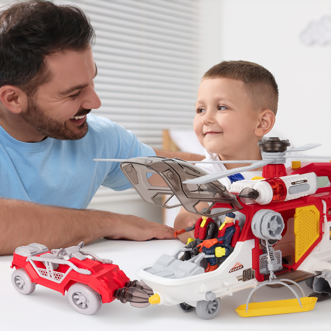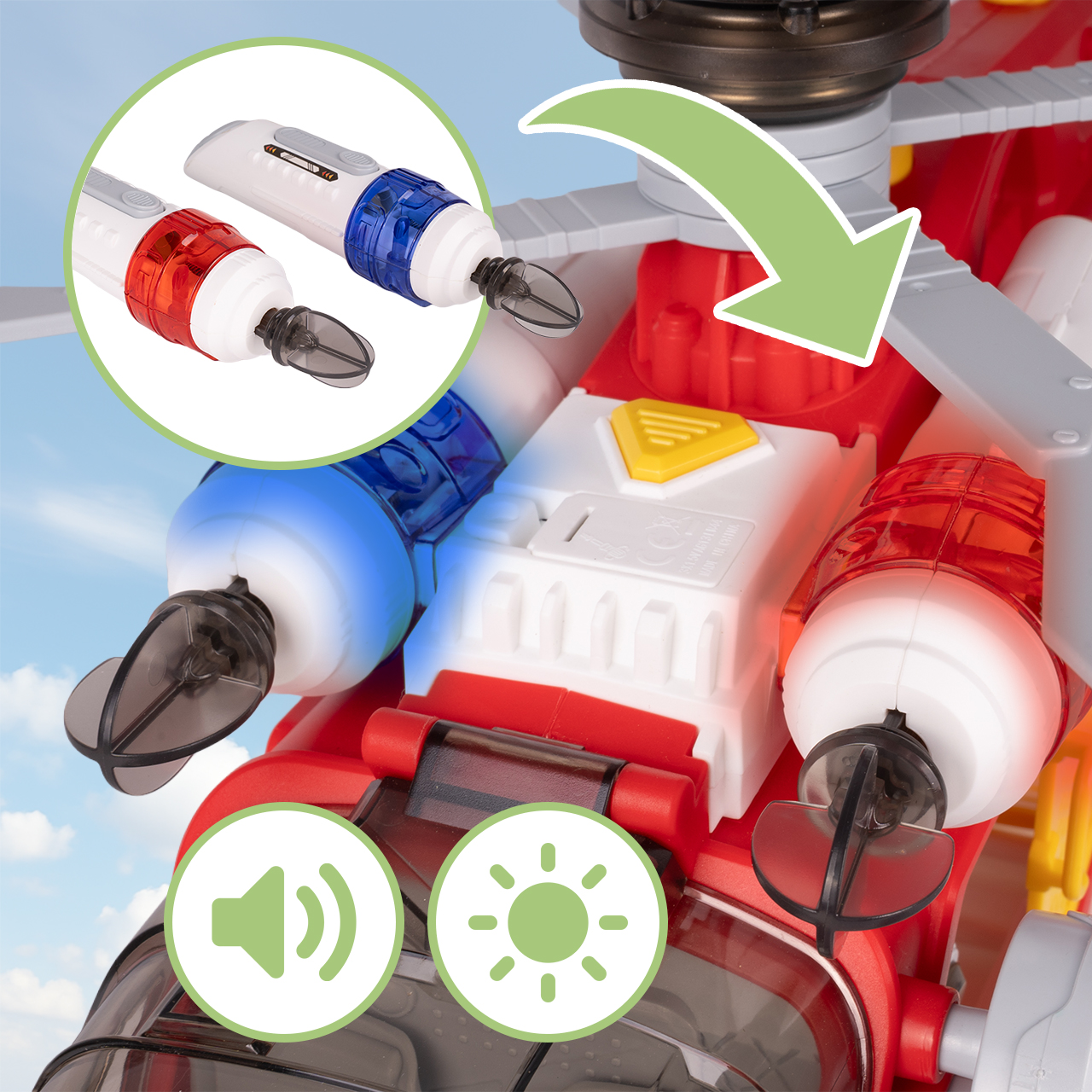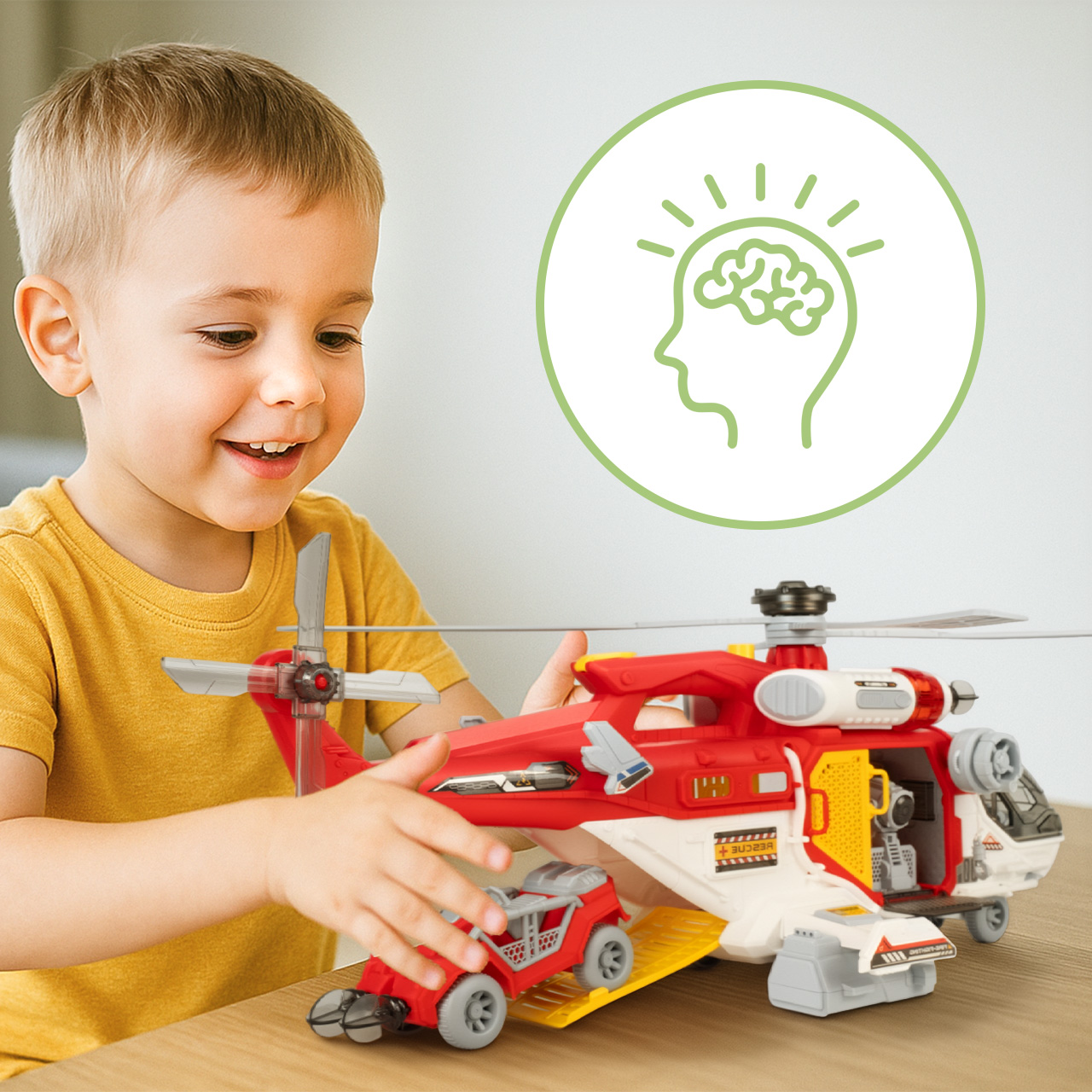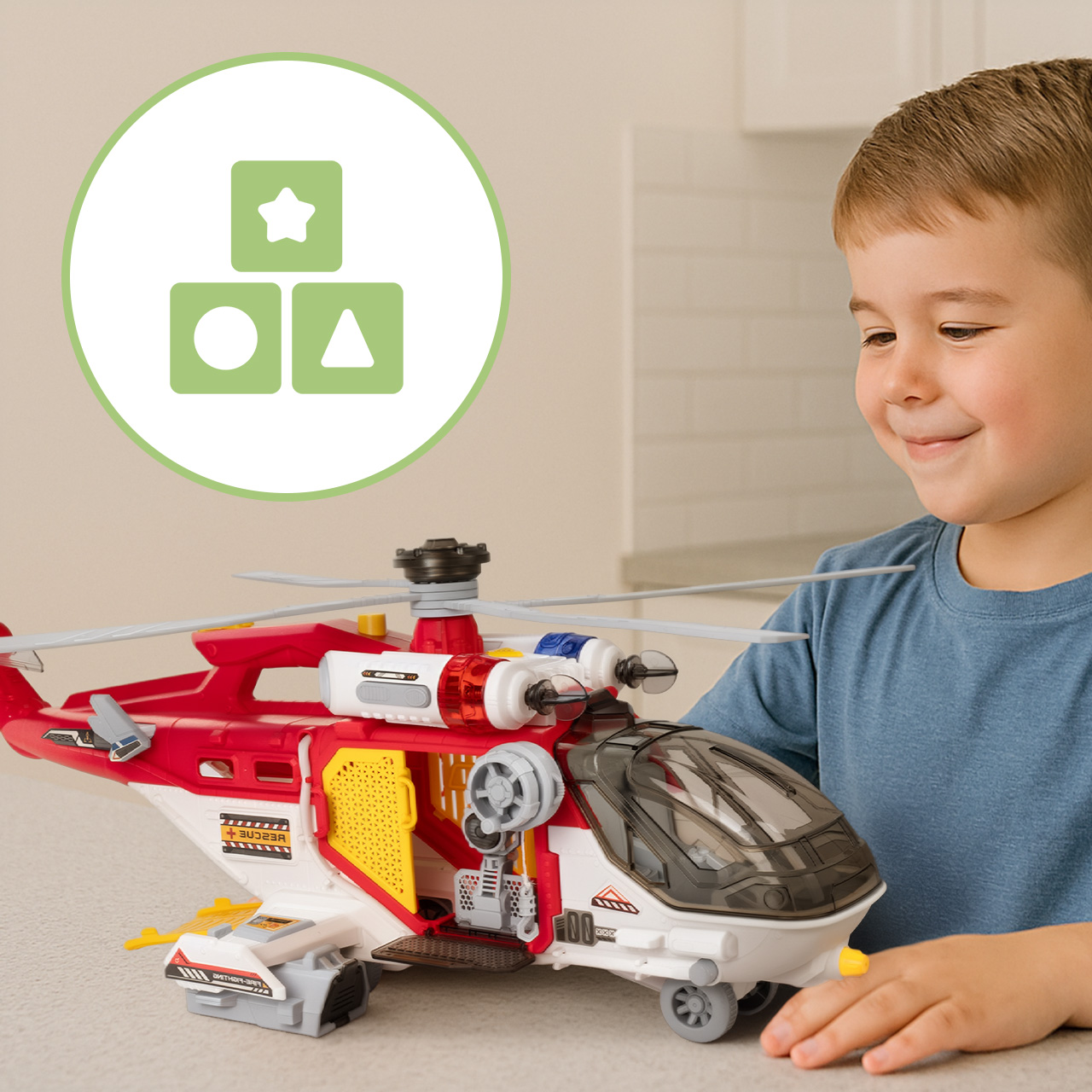 Kiedy liczy się każda sekunda, ten duży śmigłowiec natychmiast wzlatuje do góry. Obracające się wirniki i realistyczne detale kadłuba sprawiają, że dzieci od razu wchodzą w rolę pilotów i dyspozytorów. Konstrukcja jest solidna, a przy tym lekka – idealna do częstego „startowania” i lądowania na dywanie, kocu czy biurku.