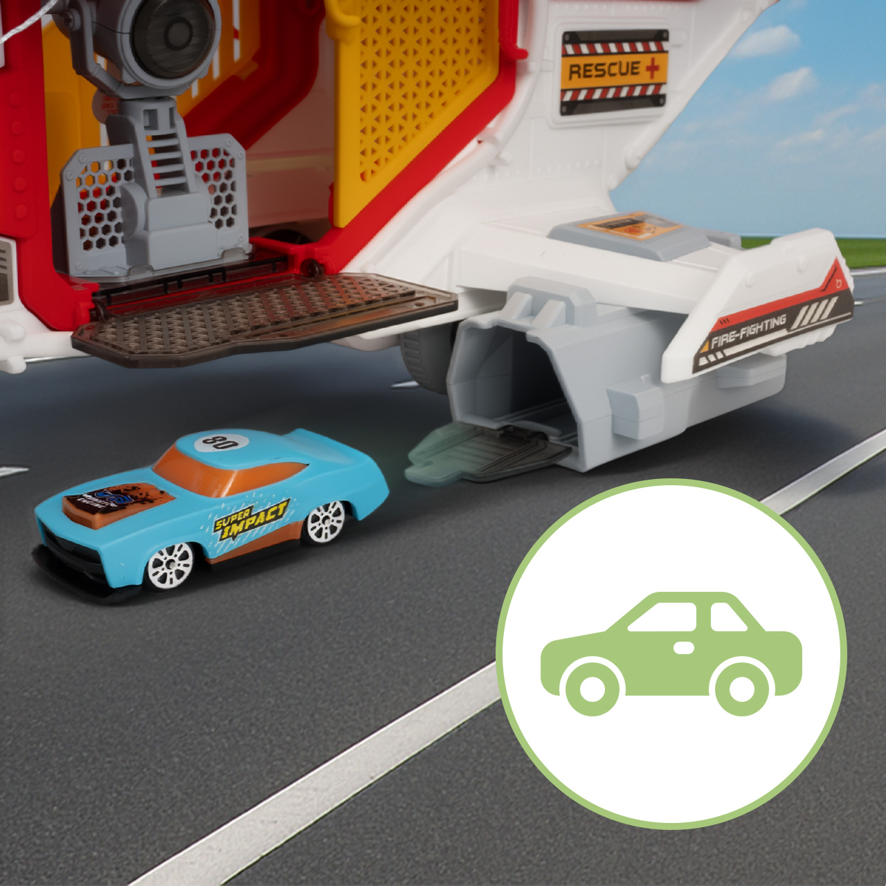 W zestawie znajdziesz dwa samochodziki, które idealnie nadają się do odgrywania zdarzeń na drodze – od stłuczki po zepsute auto wymagające ewakuacji. Dzięki nim dziecko ma gotowy „plan sytuacyjny”, a zabawa bez końca rozwija pomysłowość i opowiadanie historii.