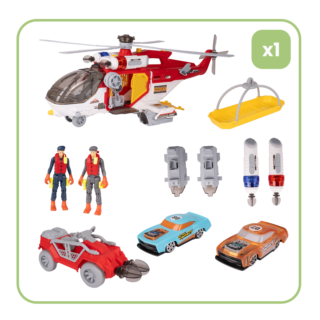 - Wielki śmigłowiec ratunkowy – efektowny, solidny, z obracającymi się wirnikami i otwieranymi elementami.