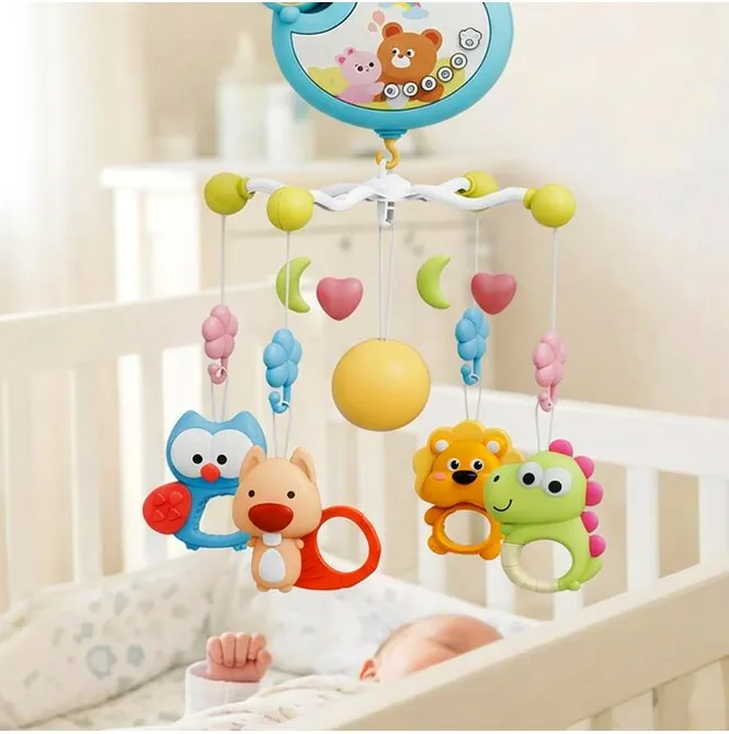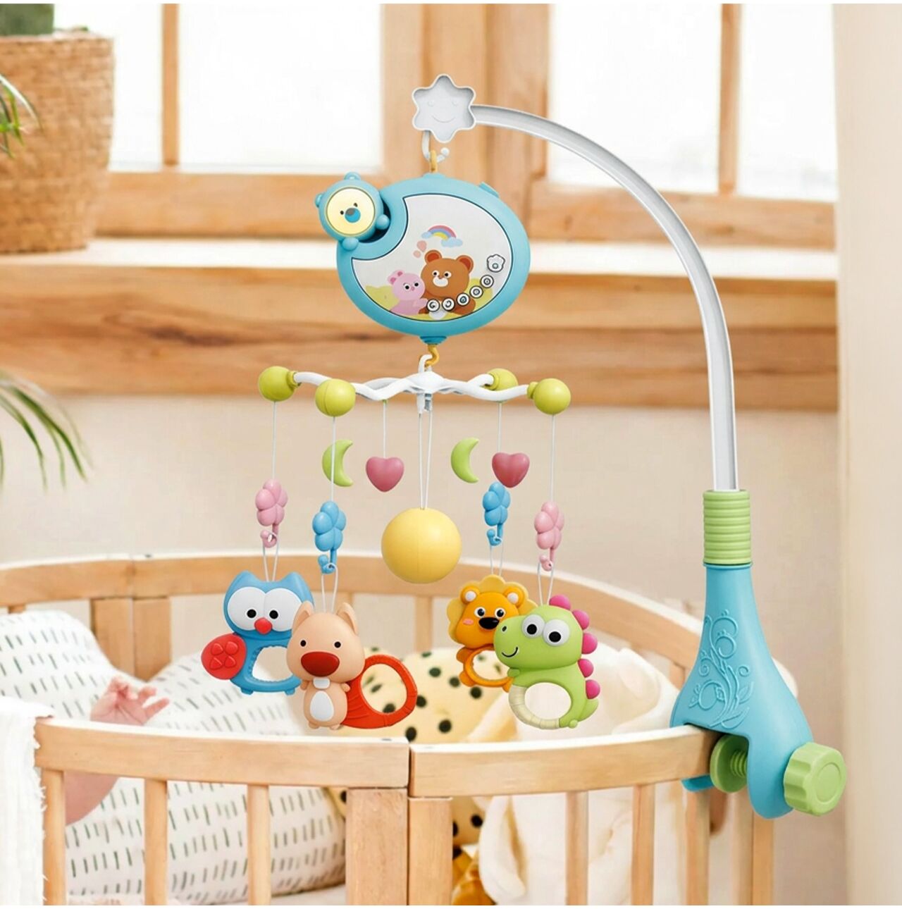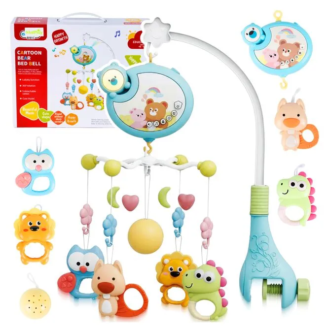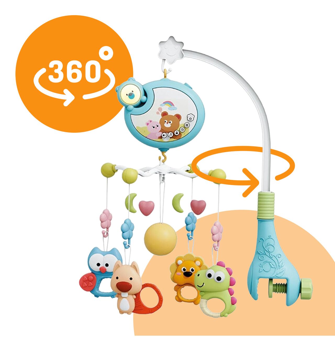 Karuzelka do Łóżeczka z Pozytywką 360° Grzechotki Gryzaki 5szt Melodie 0+
