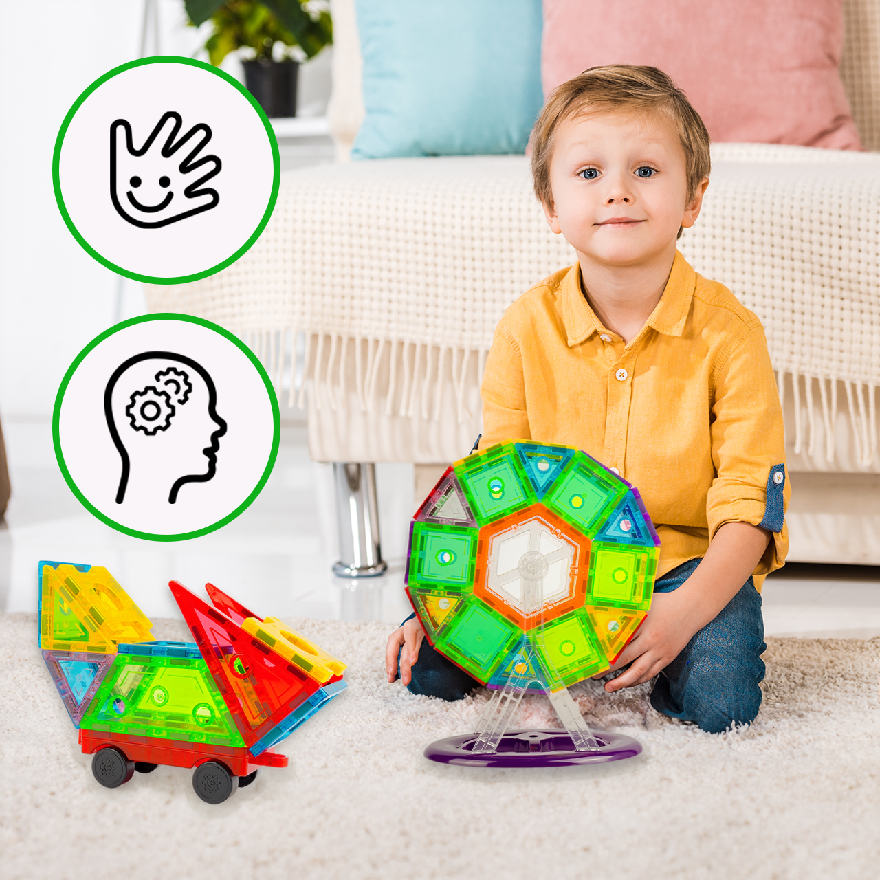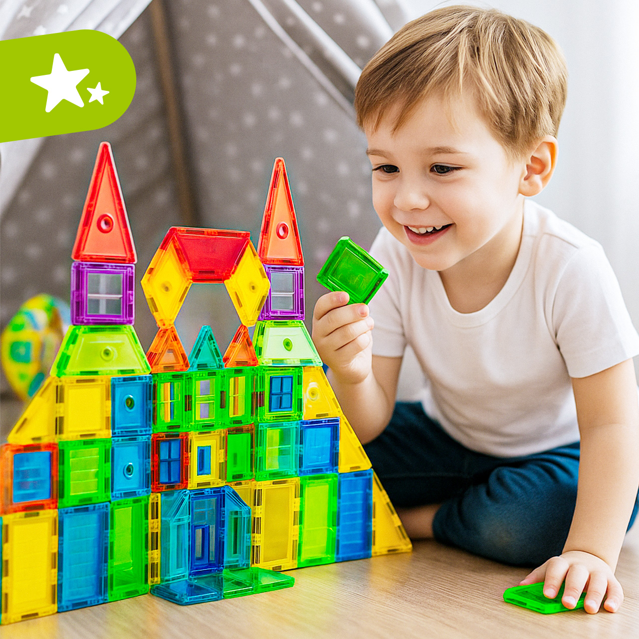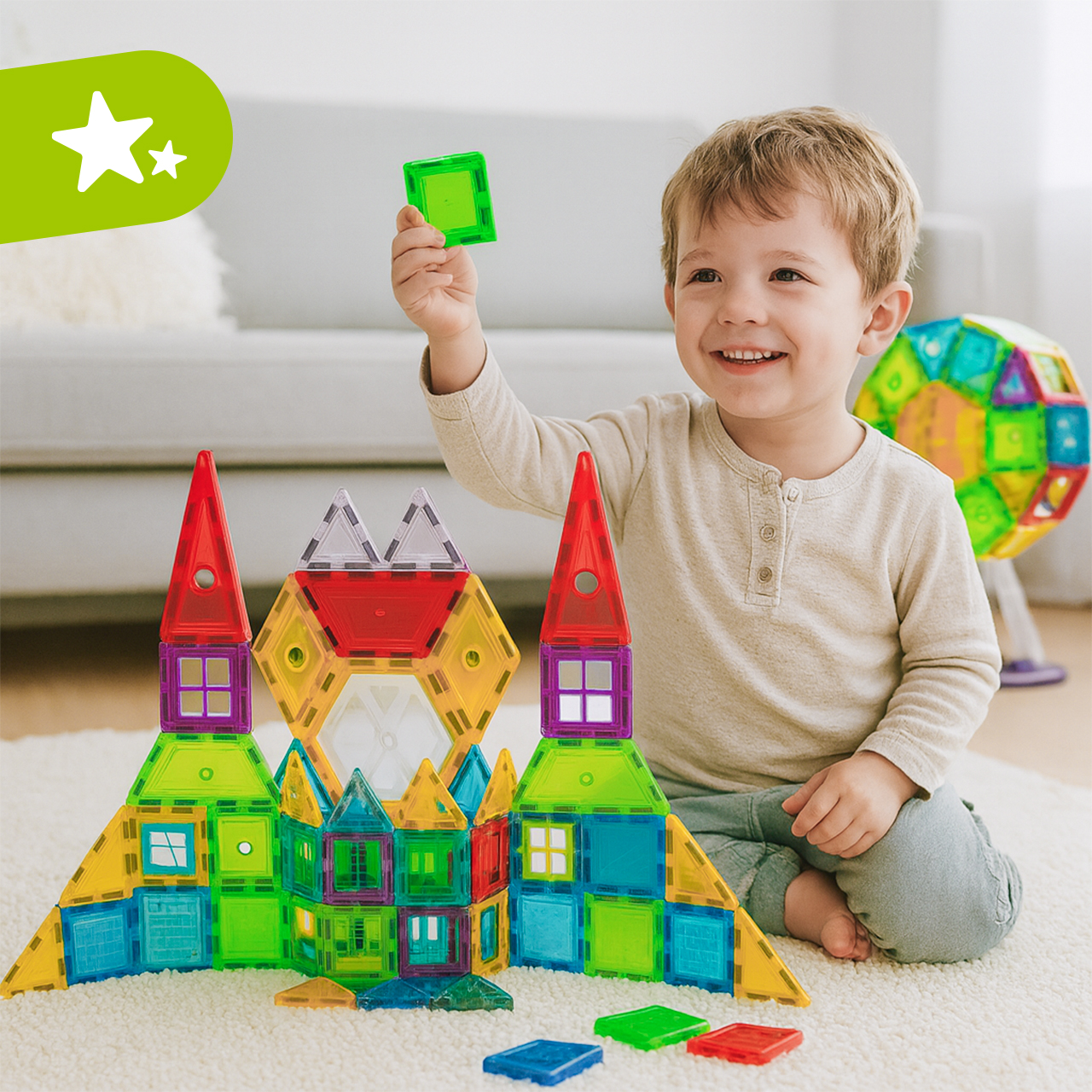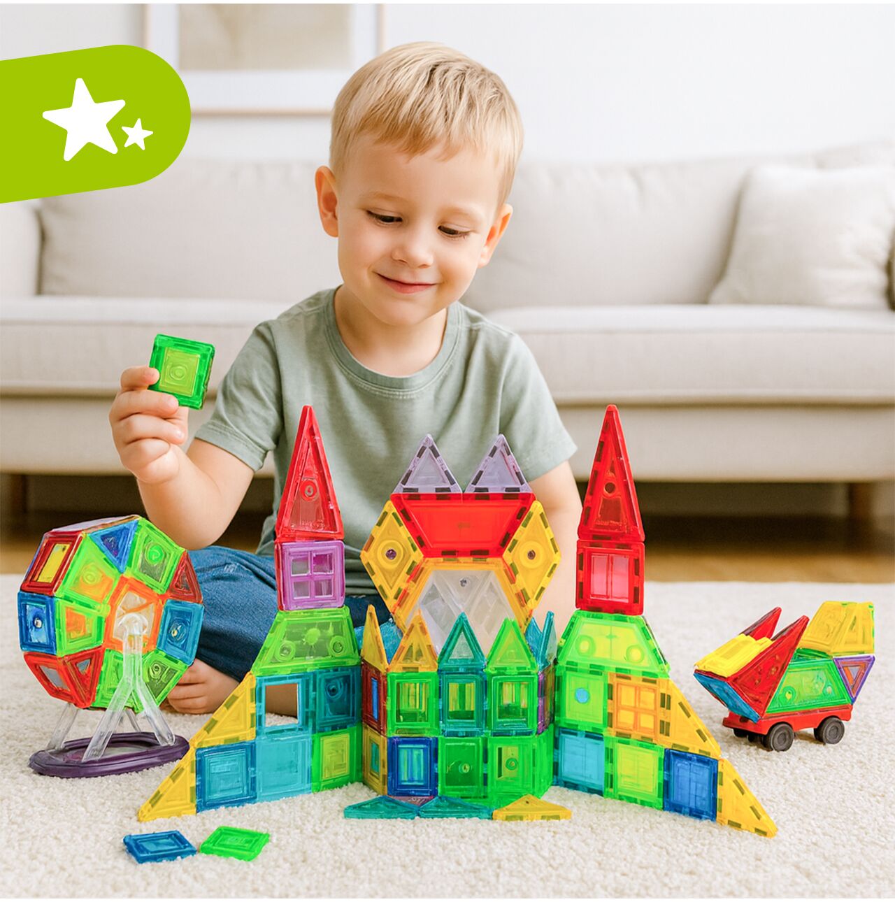 - Mocne, trwałe magnesy – stabilne budowle, łatwe łączenie nawet dla maluchów.