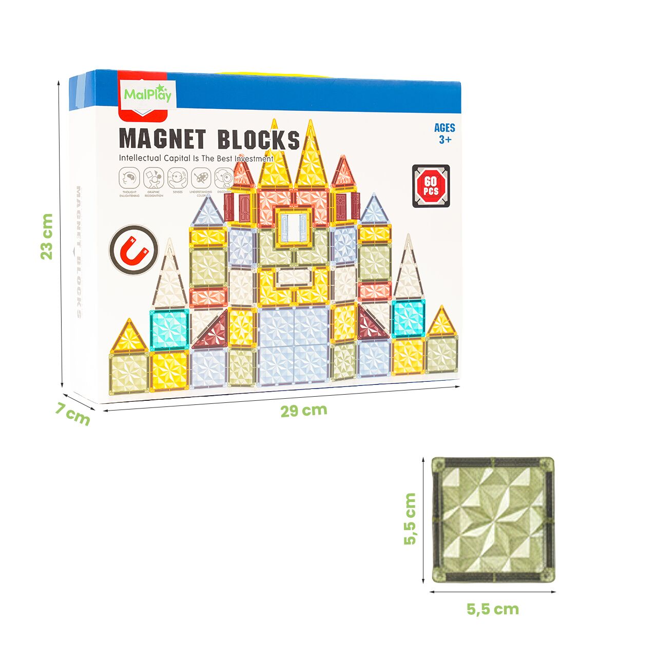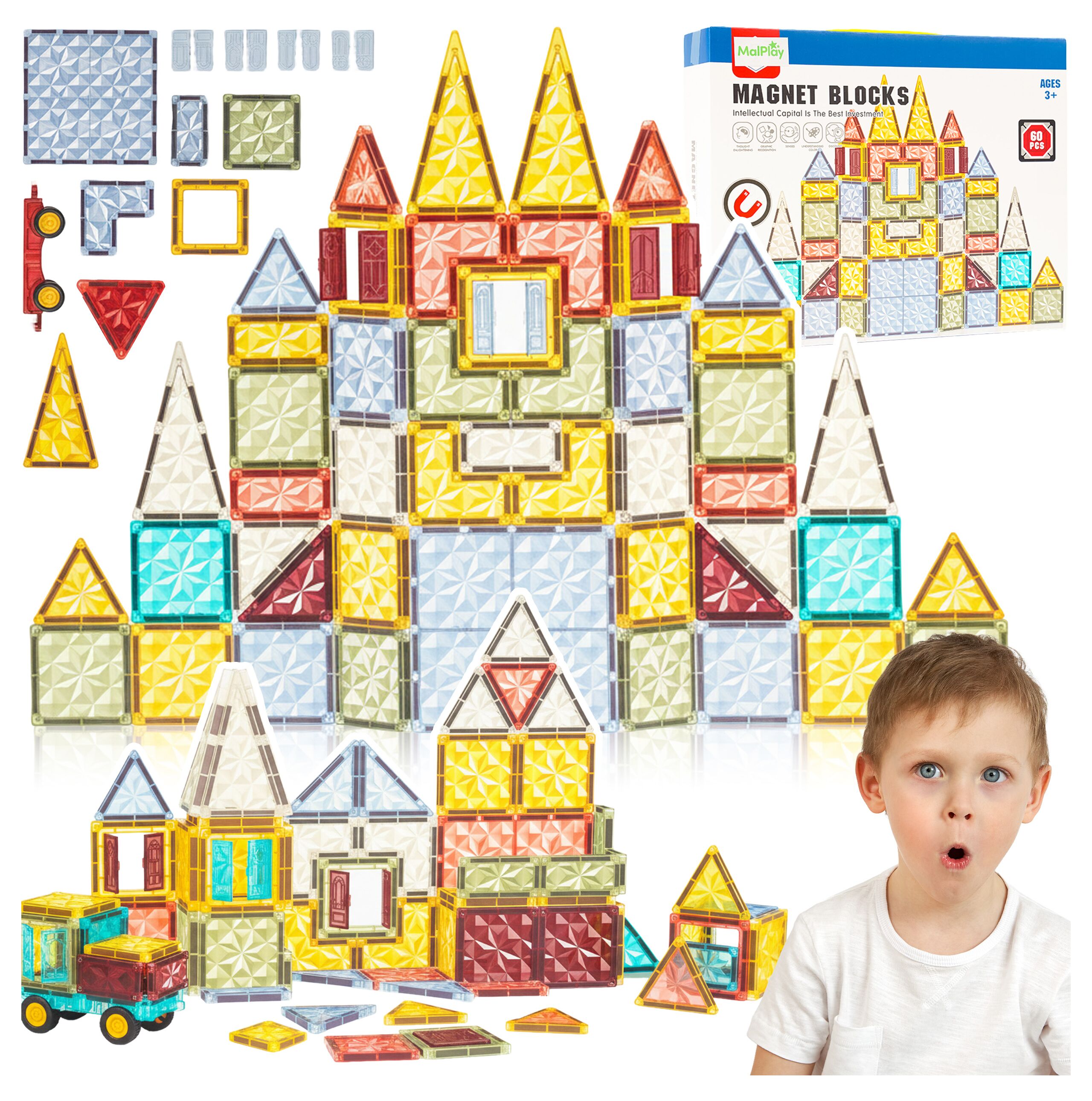- 60 solidnych elementów magnetycznych – różne kształty i kolory zapewniają kreatywną zabawę.