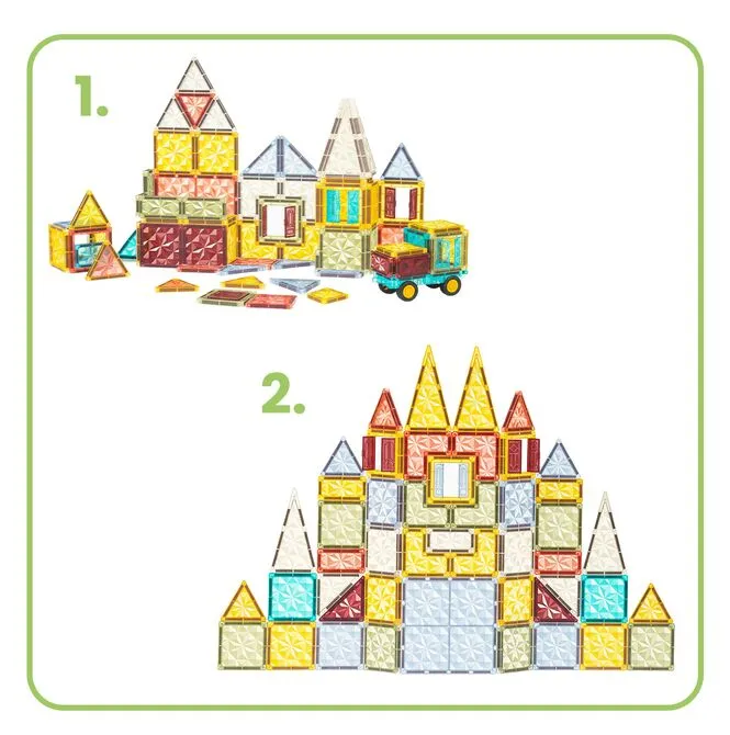 Każdy element został wykonany z wysokiej jakości tworzywa ABS, odpornego na pękanie i odkształcenia. Krawędzie są gładko zaokrąglone, co zapewnia pełne bezpieczeństwo podczas zabawy. Silne magnesy wewnątrz klocków gwarantują trwałe połączenia – konstrukcje nie rozpadają się podczas przenoszenia czy zabawy.