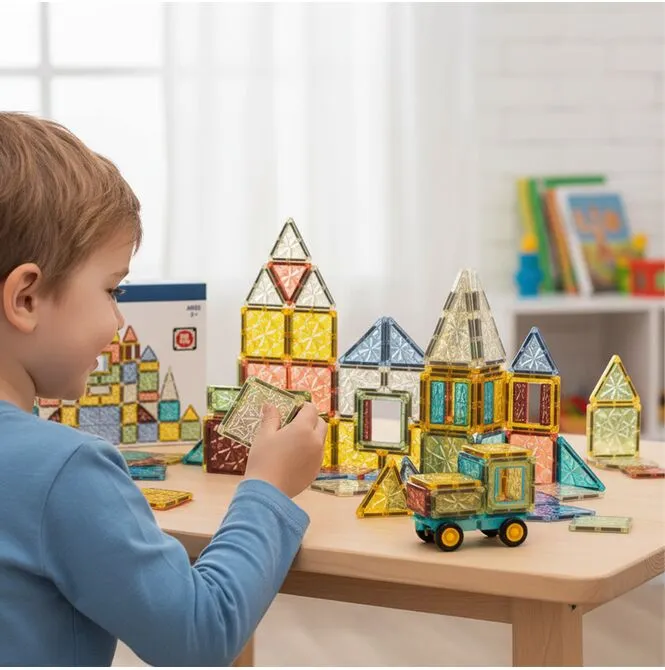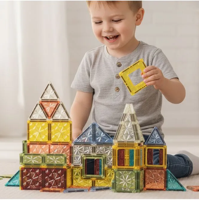 Zestaw klocków magnetycznych 3D wspiera rozwój dziecka na wielu poziomach – uczy planowania, logicznego myślenia i pobudza wyobraźnię przestrzenną. Dziecko ćwiczy zdolności manualne oraz poznaje podstawy inżynierii i geometrii w praktyce. Każdy element łączy się magnetycznie, co gwarantuje satysfakcję i stabilność konstrukcji.