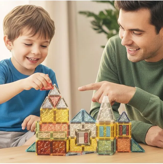 Zabawa klockami magnetycznymi rozwija zdolności poznawcze i techniczne. Dziecko uczy się zasad równowagi, magnetyzmu i konstrukcji przestrzennych. To idealne wprowadzenie do STEM (Science, Technology, Engineering, Mathematics) – nauki przez praktykę, ciekawość i eksperymentowanie.