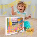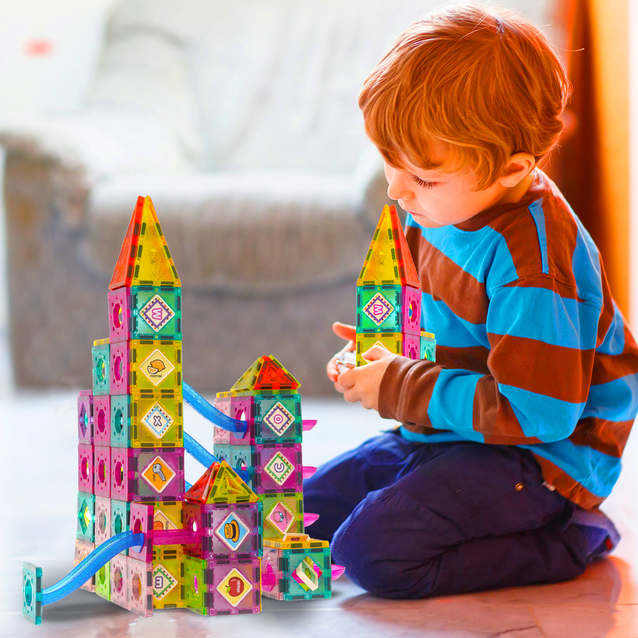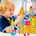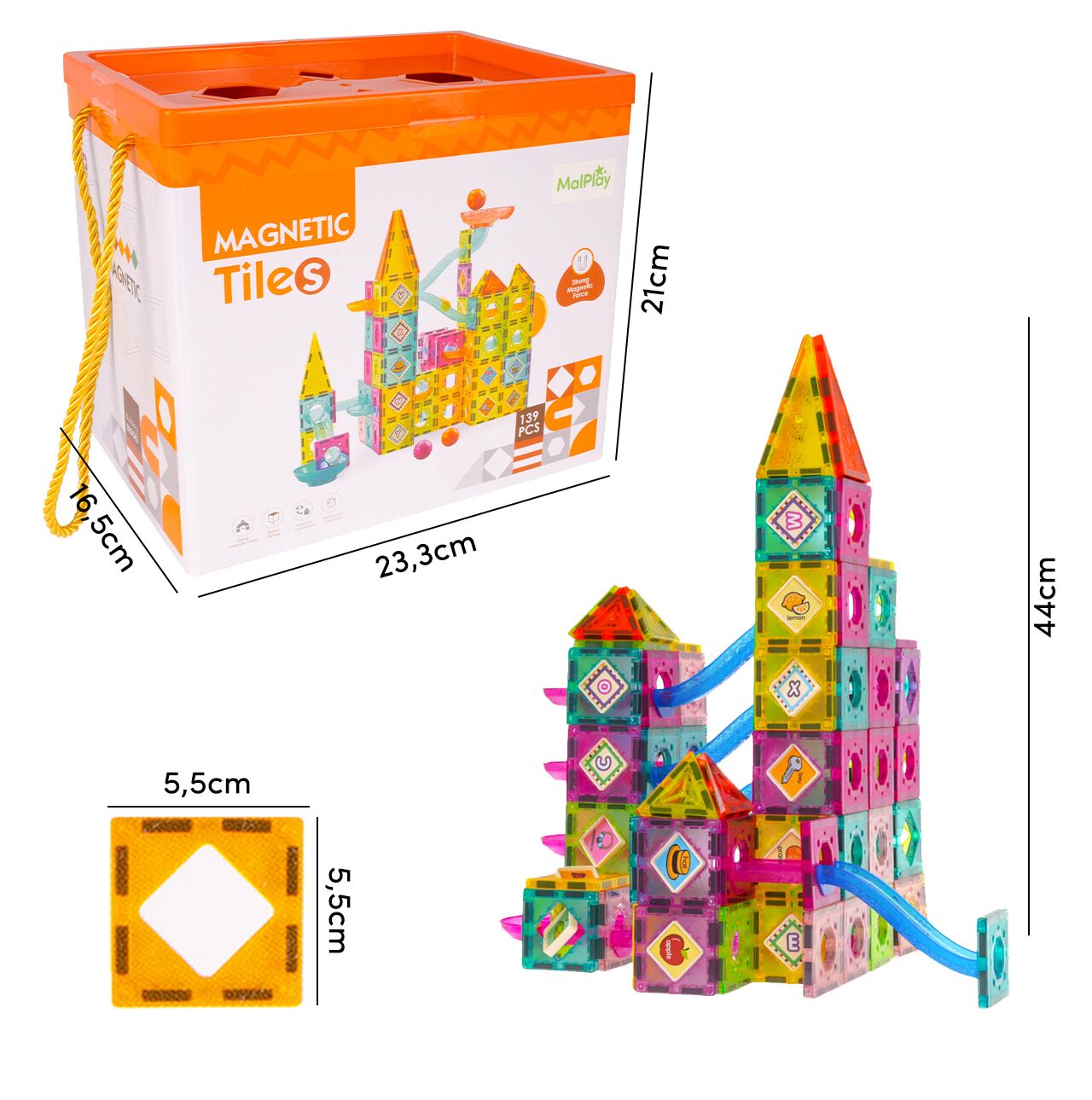 To naprawdę duży komplet – 139 elementów, który daje dzieciom ogromną swobodę tworzenia. Z taką liczbą płytek i akcesoriów można budować dziesiątki wzorów 2D (mozaiki, litery, cyfry, mandale) oraz imponujące bryły 3D (zamki, wieże, domy, rakiety, labirynty). Rynny i zakręty pozwalają przeobrazić konstrukcje w kulodrom z wieloma trasami. Każdy dzień to nowa kompozycja – od prostych form dla początkujących po rozbudowane projekty dla małych inżynierów.