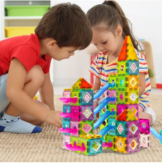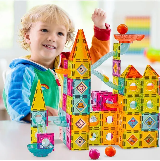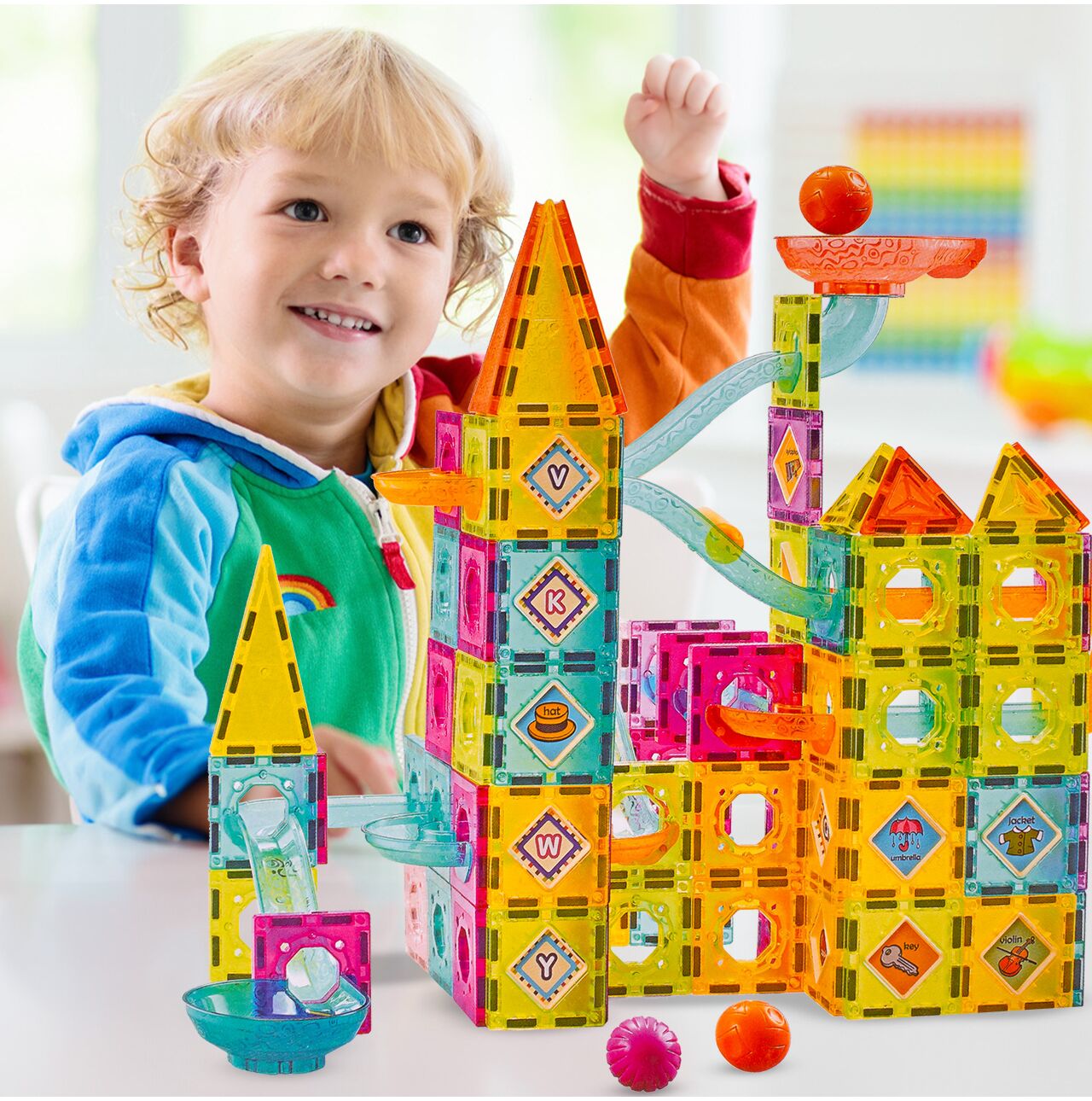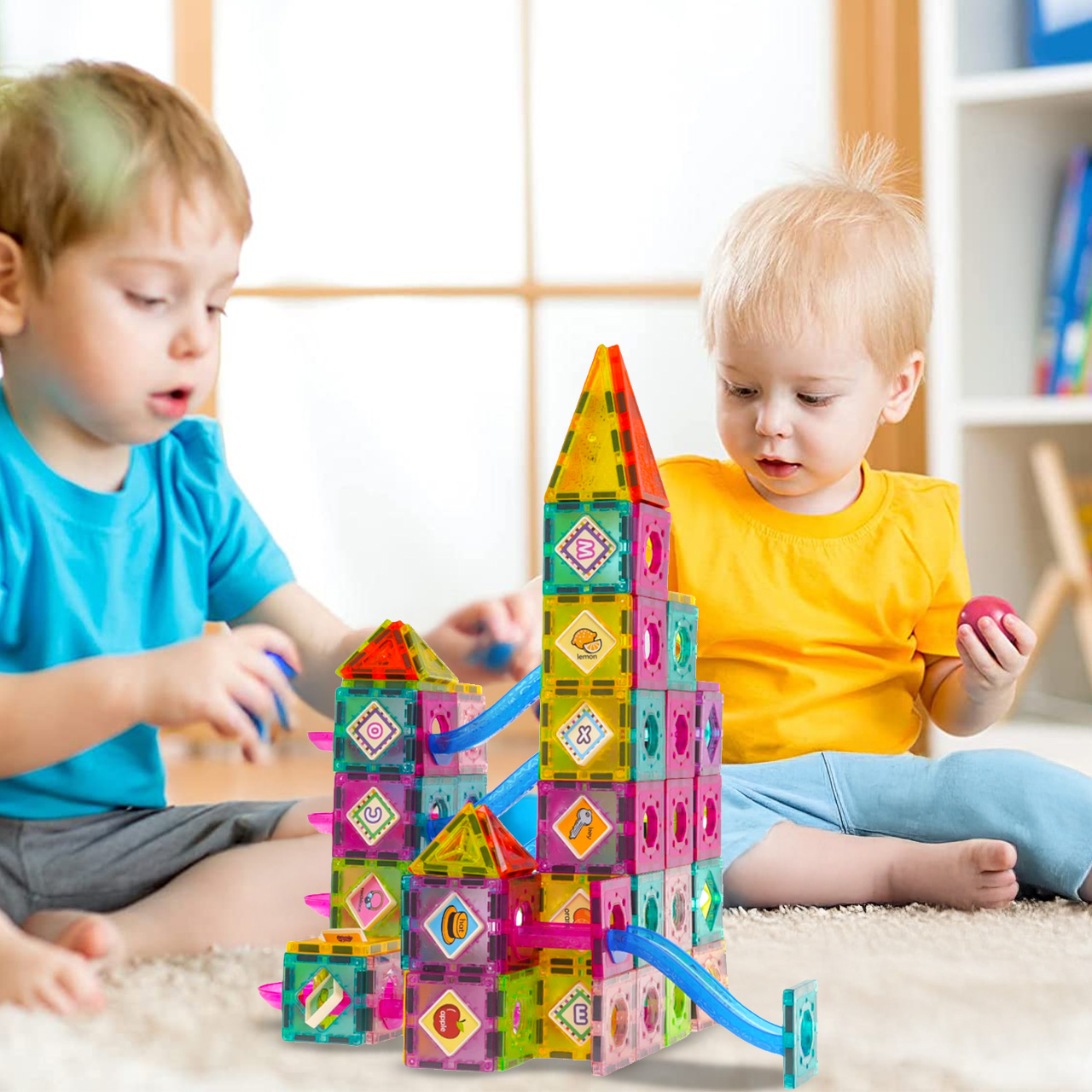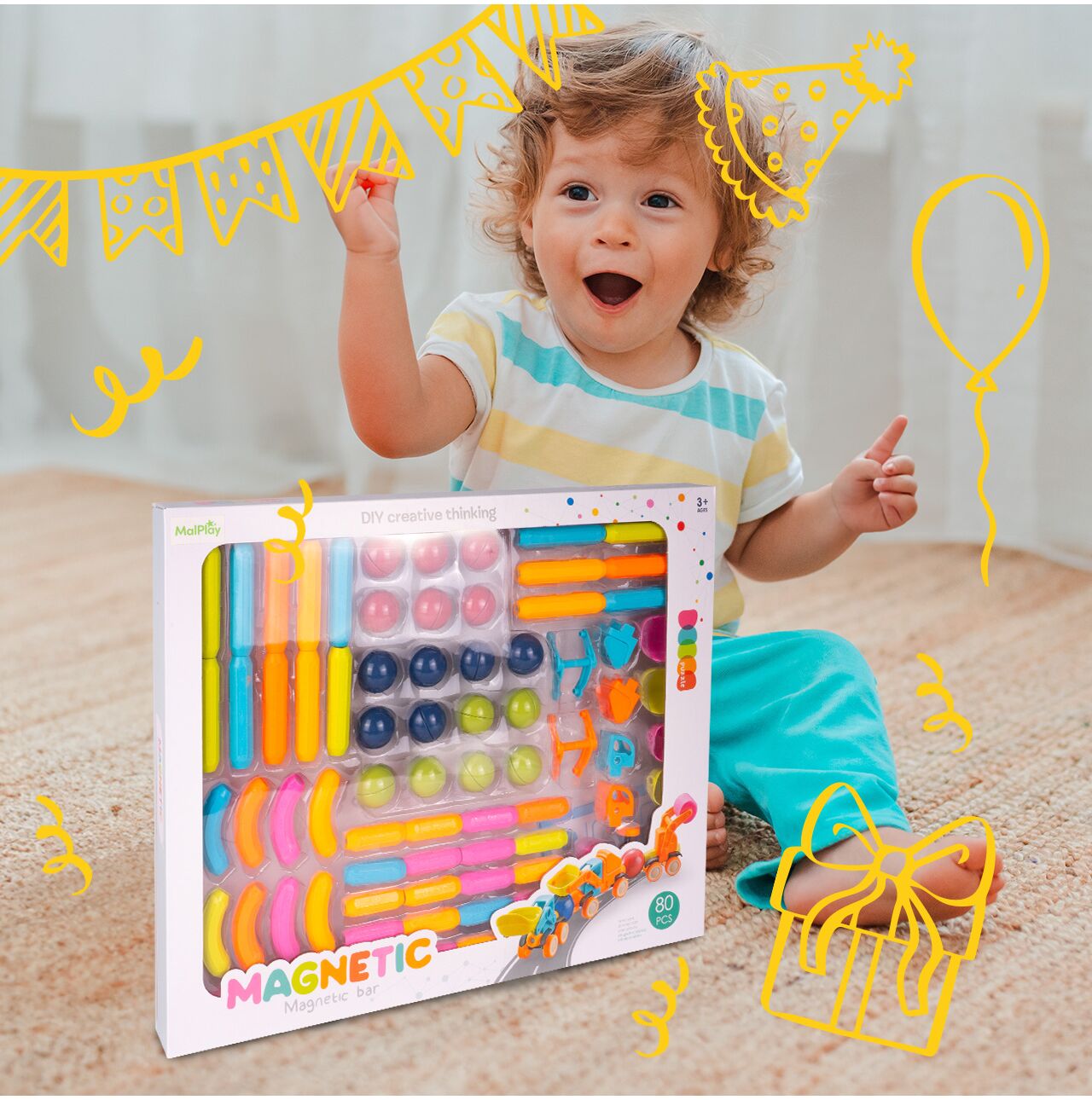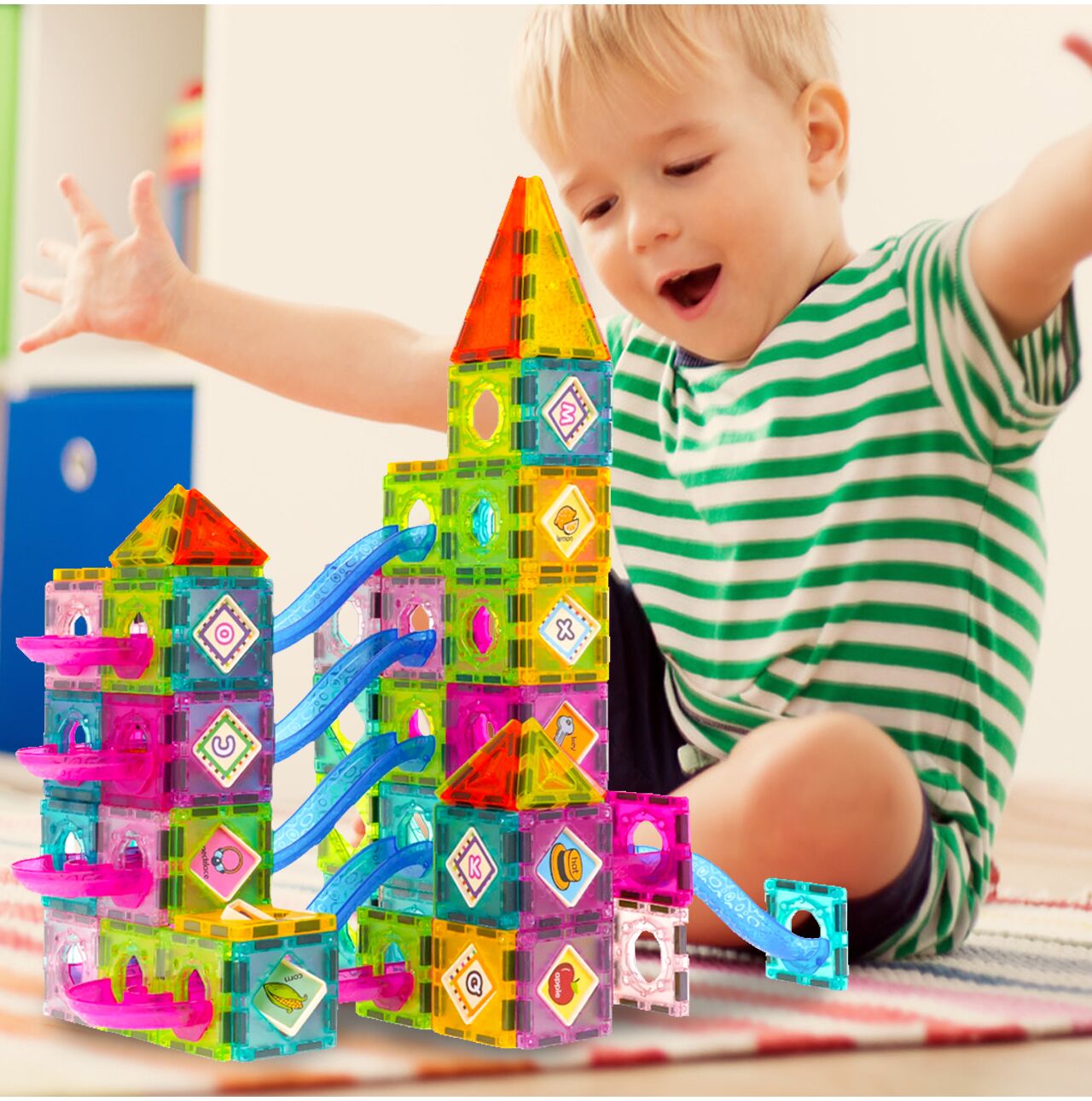 - Kulodrom + klocki 3D w jednym – rampy, rynny i miski łączą się z płytkami magnetycznymi, tworząc widowiskowe zjazdy kulek.