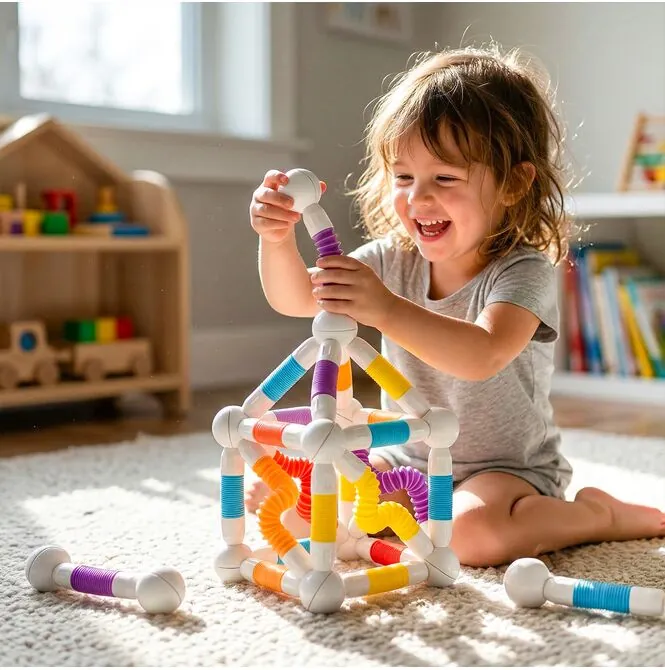 Podczas budowania dziecko ćwiczy sprawność dłoni, precyzję ruchów i koordynację ręka–oko, ale robi to w sposób naturalny i angażujący. Klocki magnetyczne rurki zachęcają do testowania, poprawiania i szukania własnych rozwiązań, więc świetnie wspierają rozwój kreatywności i myślenia przestrzennego. To zabawka dla rodziców, którzy chcą połączyć radość zabawy z czymś naprawdę wartościowym, bez efektu chwila zabawy i koniec.
