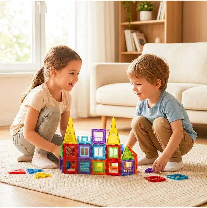 Zabawa klockami magnetycznymi to nieoceniony i pozytywny wpływ na rozwój każdego dziecka. Składanie, łączenie i dopasowywanie klocków magnetycznych w tory, wężyki lub przestrzenne figury 3D to fascynująca zabawa przez wiele godzin. Dodatkowo układanie  pozwala wspólnie spędzać czas rodziców z swoimi pociechami.