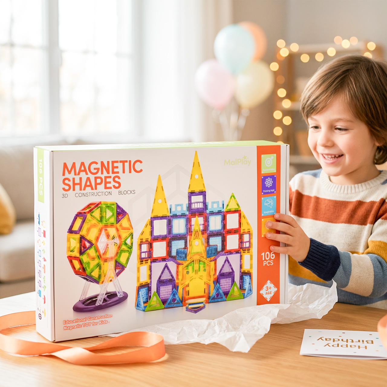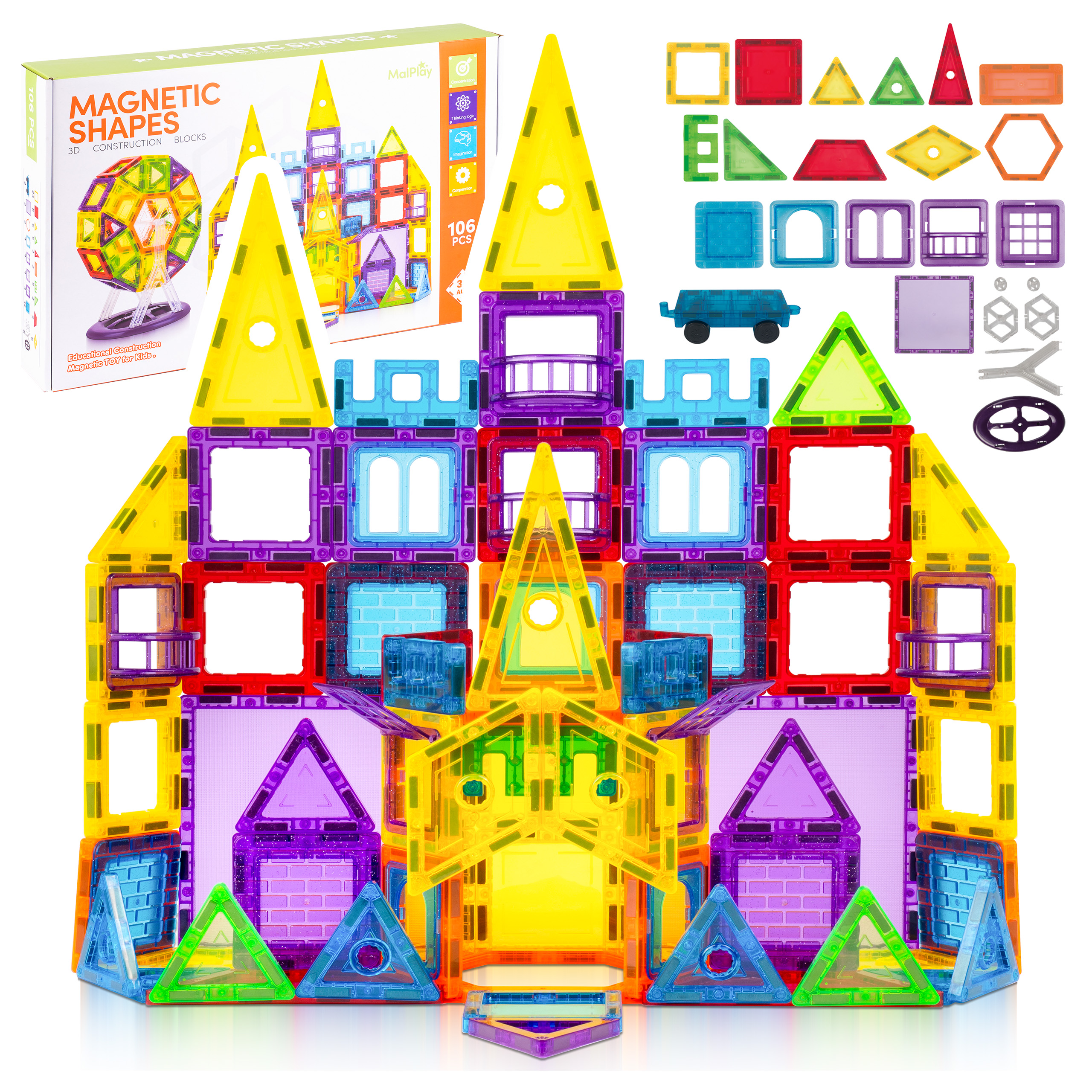 Klocki Magnetyczne Konstrukcyjne 3D Edukacyjne Układanka 106 El dla Dzieci